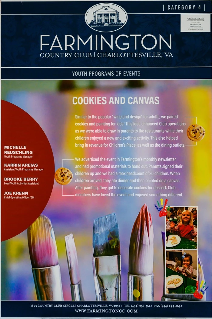 Similar to the popular "wine and design" for adults, we paired cookies and painting for kids! This idea enhanced Club operations as we were able to draw in parents to the restaurants while their children enjoyed a new and exciting activity. This also helped bring in revenue for Children's Place, as well as the dining outlets.