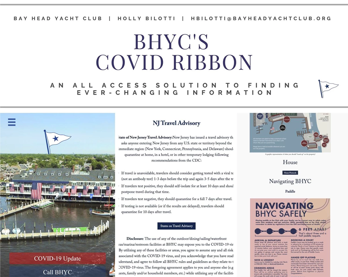 To give members a one-stop-shop for all Covid-19 information, BHYC created a Covid-19 Ribbon located on the BHYC website and mobile app. The Covid Ribbon provided members with up-to-date rules and regulations that could be easily accessed and shared. This outlet enabled the Club to communicate the most important Covid-19 related information without the need of a daily push to member’s inboxes.