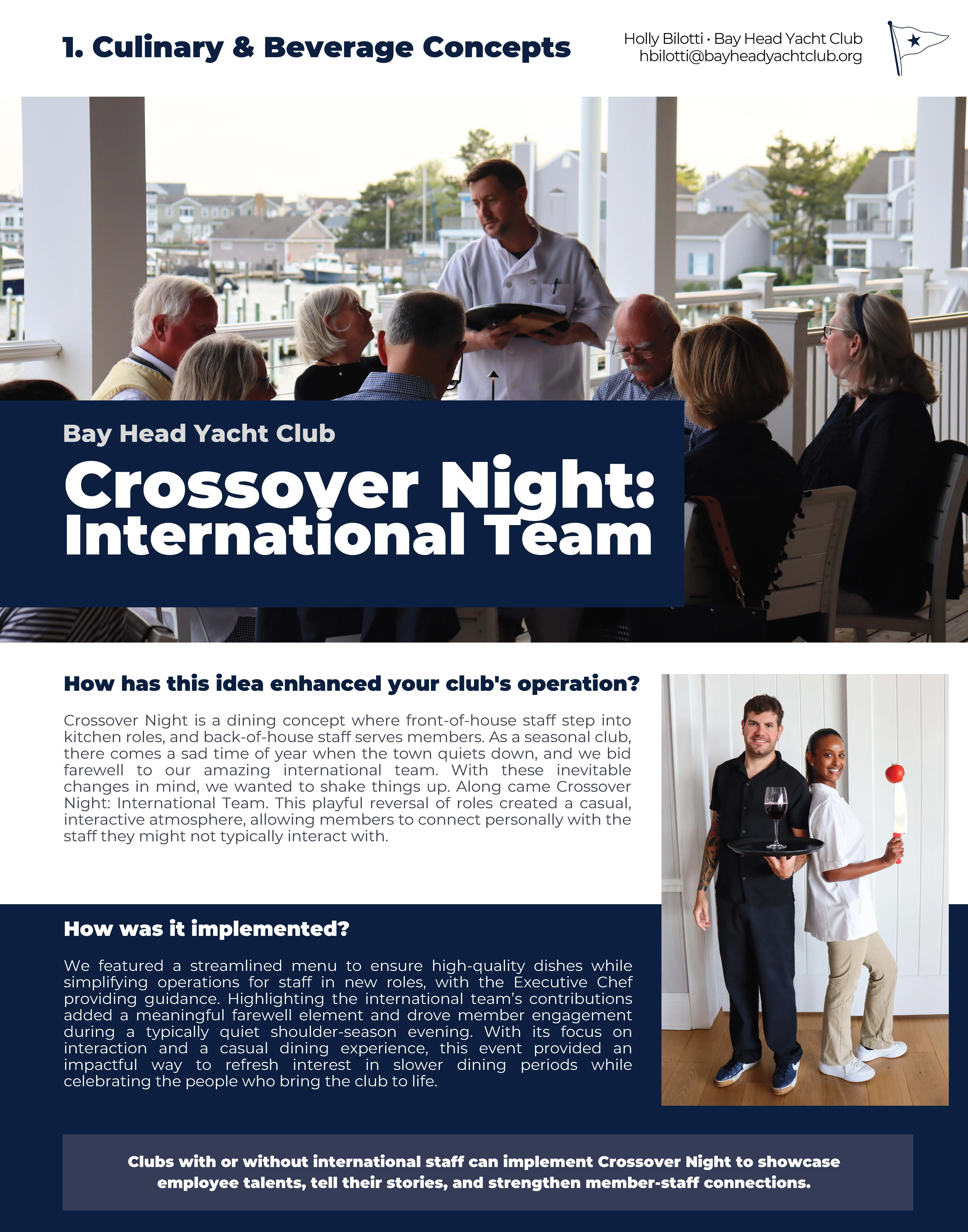 Clubs with or without international staff can implement Crossover Night to showcase employee talents, tell their stories, and strengthen member-staff connections.