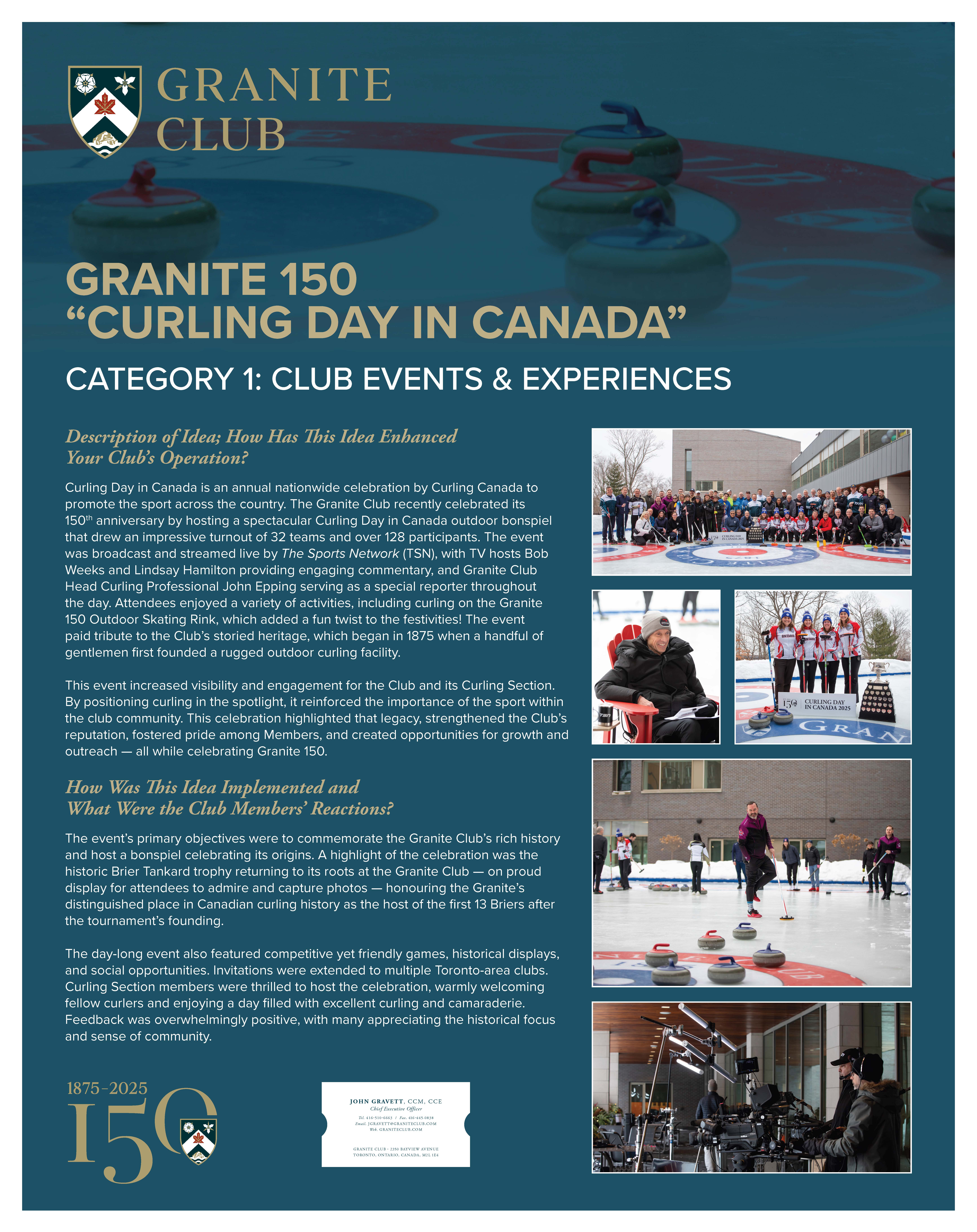 This event increased visibility and engagement for the Club and its Curling Section. By positioning curling in the spotlight, it reinforced the importance of the sport within the club community. This celebration highlighted that legacy, strengthened the Club’s reputation, fostered pride among Members, and created opportunities for growth and outreach—all while celebrating Granite 150.