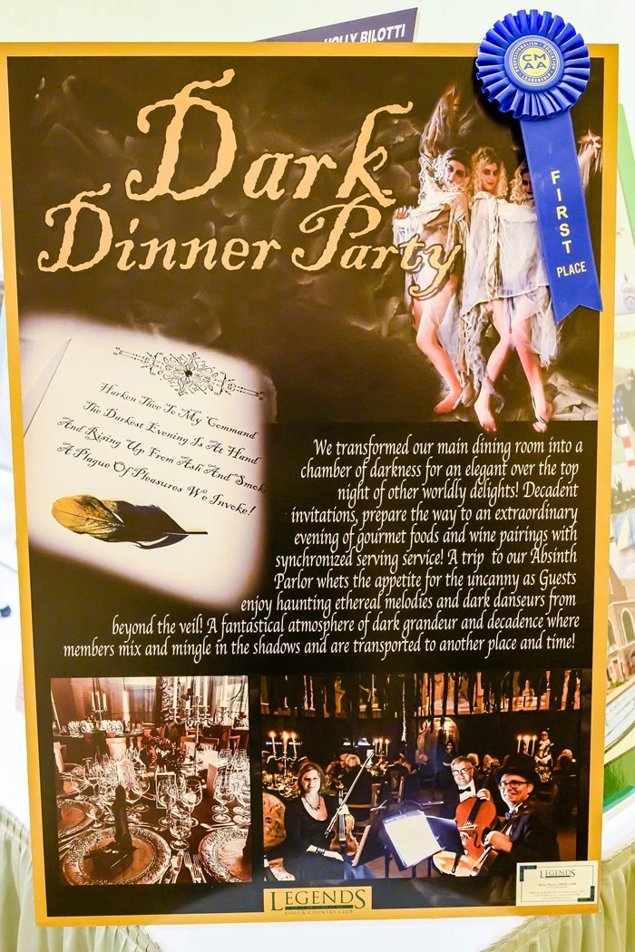 We transformed our dining room into a Dark Chamber reminiscent of a Great Dining Hall. We took members to another place and time with synchronized service and over-the-top table escapes including dry ice spilling out of old silver containers filled with lush fruits and dark flowers. Ethereal melodies performed by a string trio, while shadowy dancers added to the dark ambiance. We also had an absinthe parlor to whet the appetite for the uncanny!