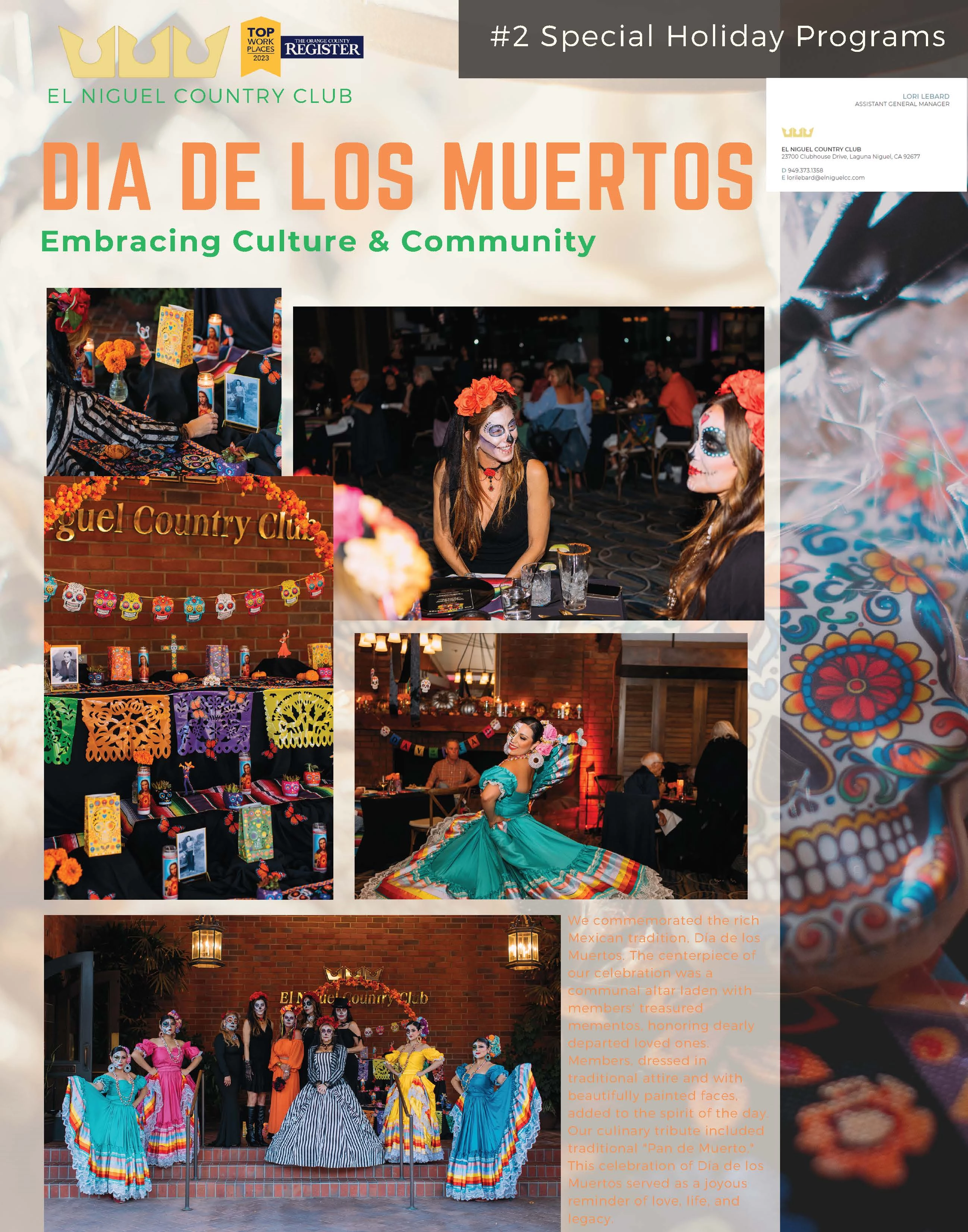 Implementing the Día de los Muertos celebration was a team effort born from our innovative committee at El Niguel. Our team members expressed a desire to share this cultural experience with club members, fostering a sense of diversity and unity within our community.