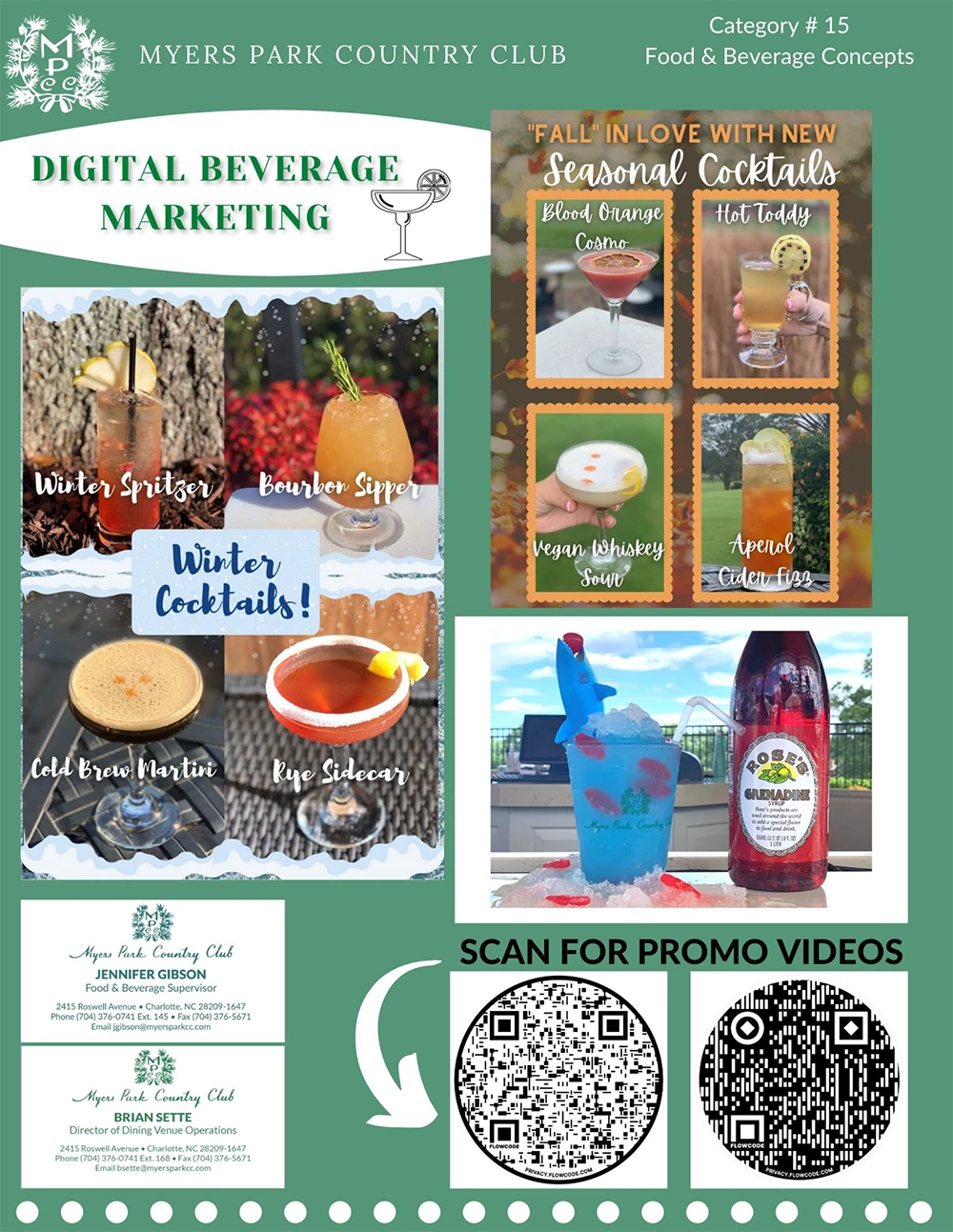 These visually appealing promotions are a great way to showcase our beverage program. We have found them to be very effective in highlighting the new and exciting beverages being featured in our dining rooms. These promotions also allow us to display the talents of our bartenders who utilize their creativity to create these unique cocktails. They take a lot of pride in coming up with new and interesting ideas and enjoy seeing their work displayed in member promotions. We challenge our staff to participate in promoting these new beverages through incentive competitions. This results in a noticeable increase to our beverage sales, and overall morale boost of the dining room atmosphere!