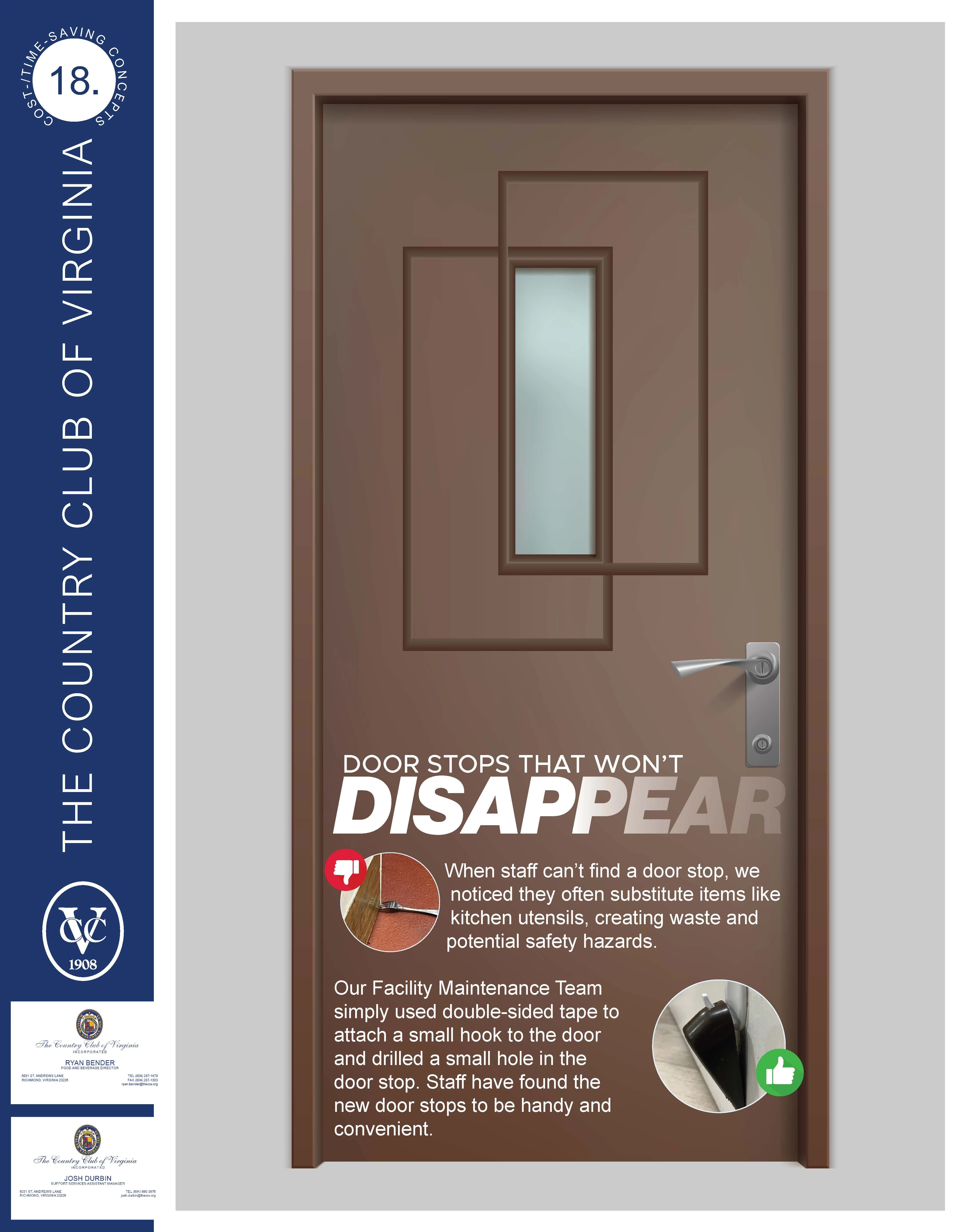 When staff can’t find a door stop, we noticed they often substitute items like kitchen utensils, creating waste and potential safety hazards. Our Facility Maintenance Team