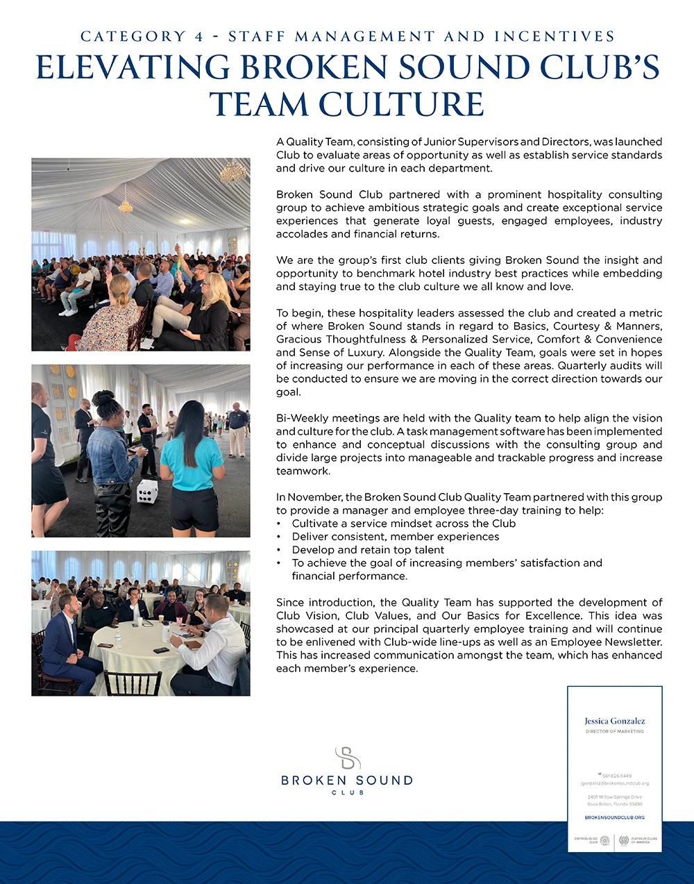 In November, the Broken Sound Club Quality Team partnered with this group to provide a manager and employee three-day training to help:
