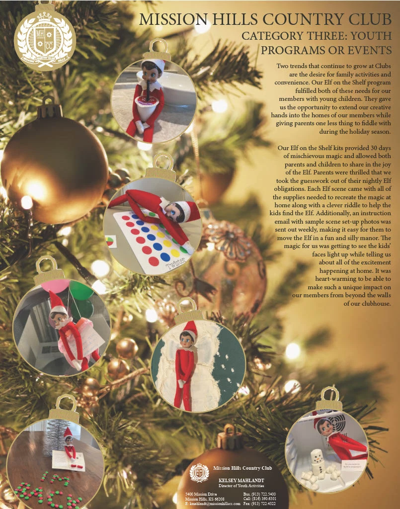 Two trends that continue to grow at Clubs are the desire for family activities and convenience. Our Elf on the Shelf program fulfilled both of these needs for our members with young children. They gave us the opportunity to extend our creative hands into the homes of our members while giving parents one less thing to fiddle with during the holiday season.