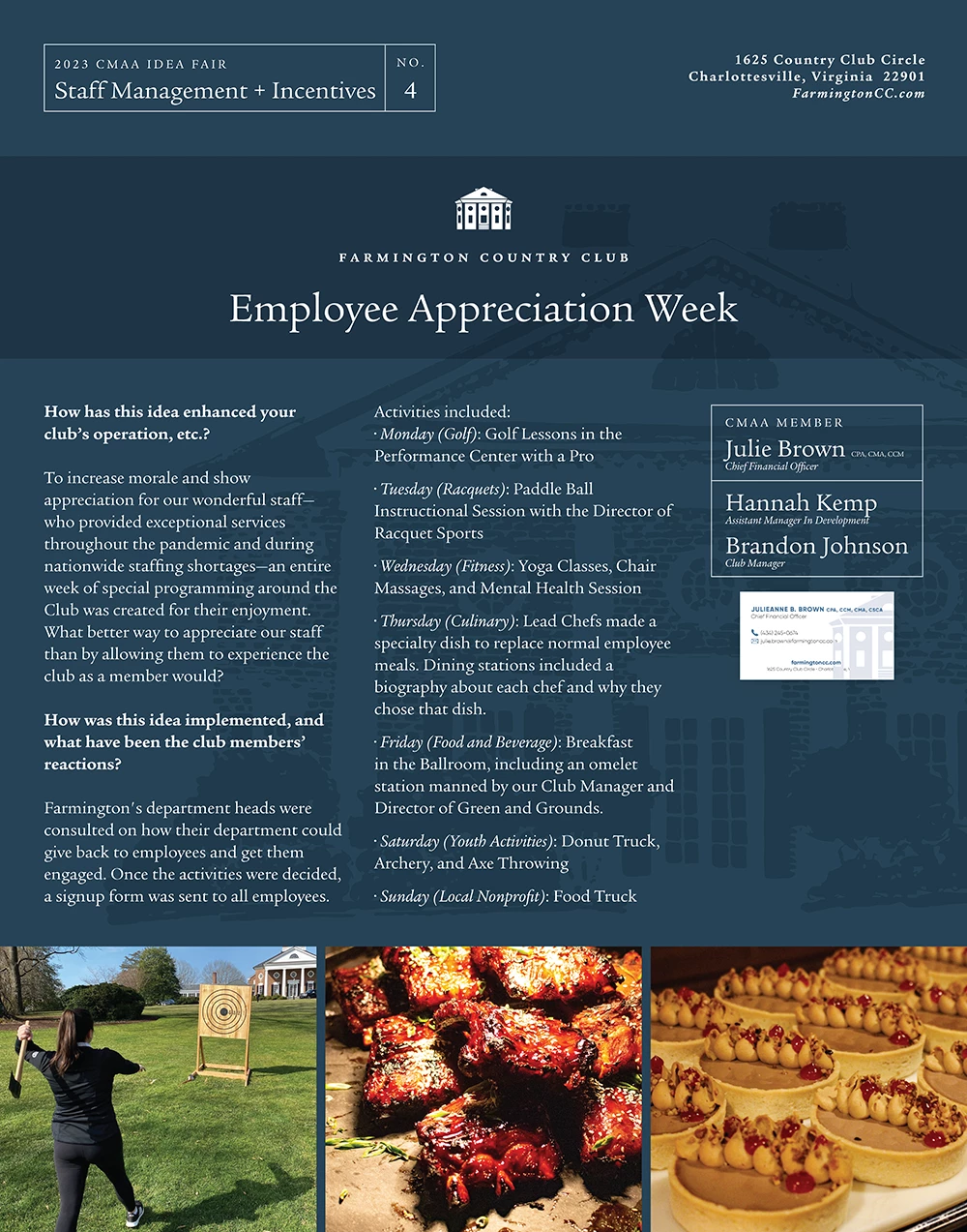To increase morale and show appreciation for our wonderful staff—who provided exceptional services throughout the pandemic and during nationwide staffing shortages—an entire week of special programming around the Club was created for their enjoyment. What better way to appreciate our staff than by allowing them to experience the club as a member would?