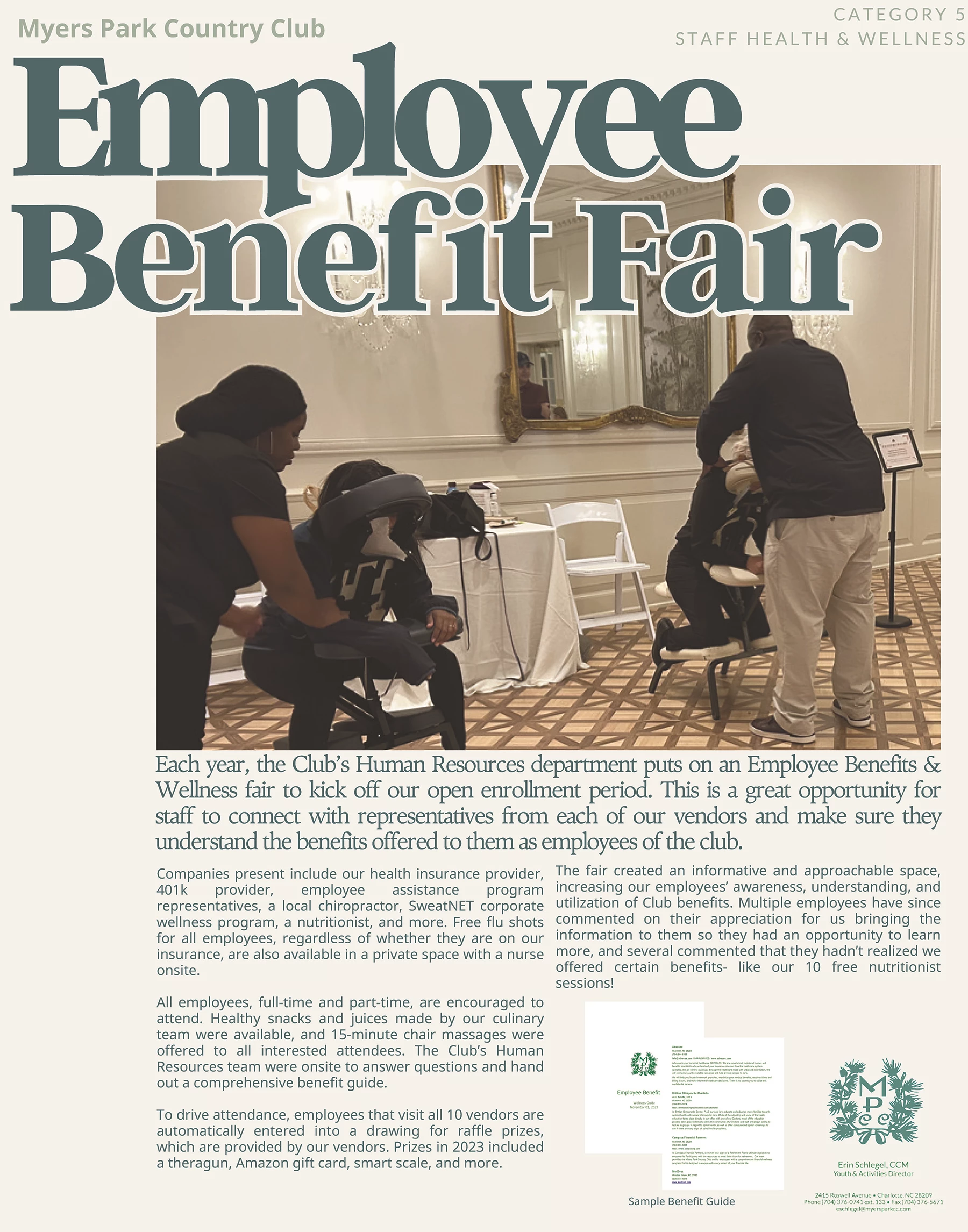 The idea for the benefit fair came about when our HR department recognized that employees didn't appear to have much knowledge of common benefit-related items and were underutilizing benefit offerings from the Club. Prior to open enrollment, it was decided to organize a benefit fair, paired with incentives and snacks in order to drive attendance. Multiple employees have since commented on their appreciation for us bringing information to them so that they had opportunity to learn more, and several even commented that they hadn’t realized we offered certain benefits - like our free nutritionist sessions!"