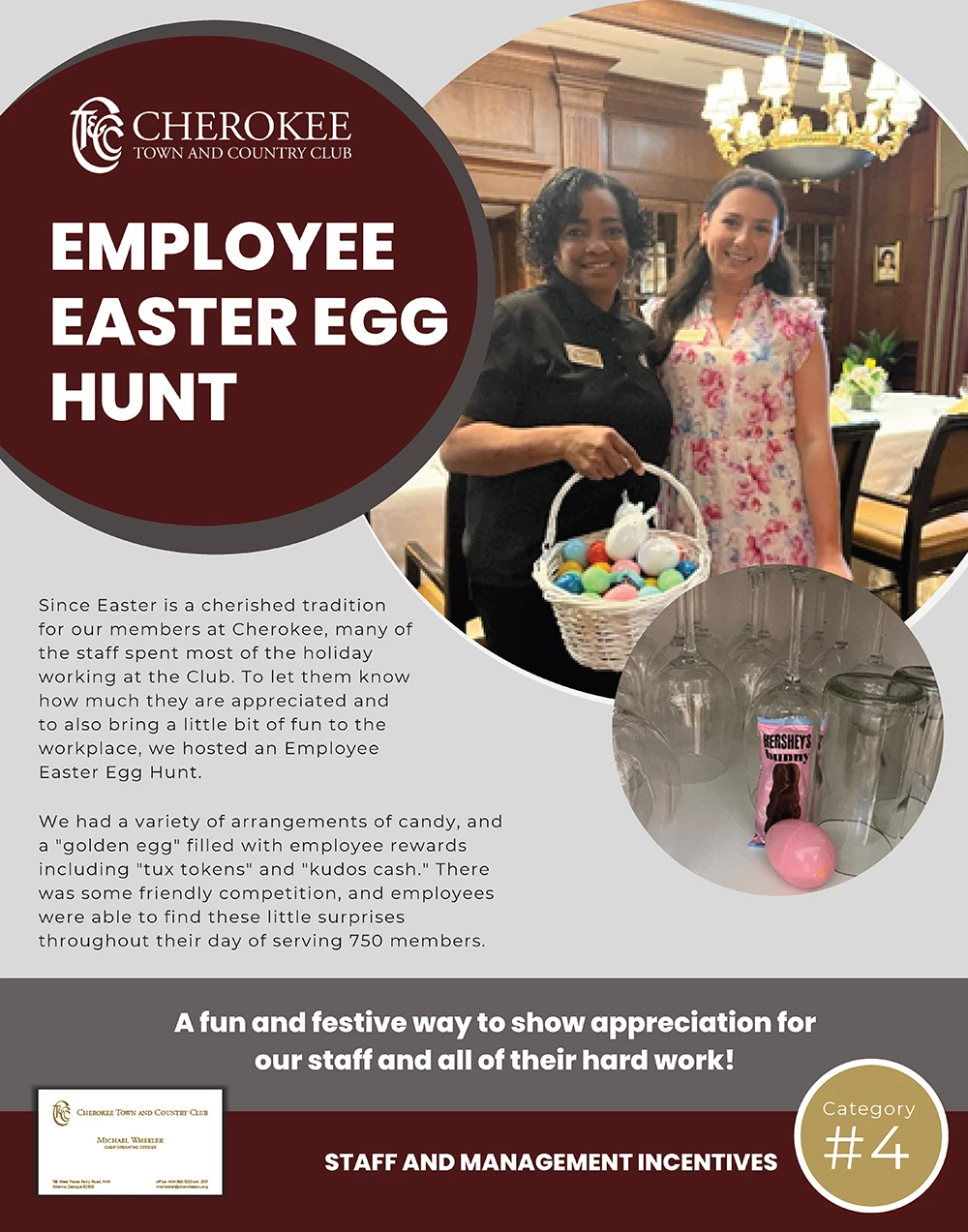 Last year, we held an Employee Easter Egg Hunt that was well received by the whole staff. We wanted to show our appreciation for them and all their hard work in a fun, festive way. Since our staff spends most of their holidays working at the Club, doing something special for them was important to us. It allowed us to show them how much we value their efforts and provide them with motivation and encouragement.