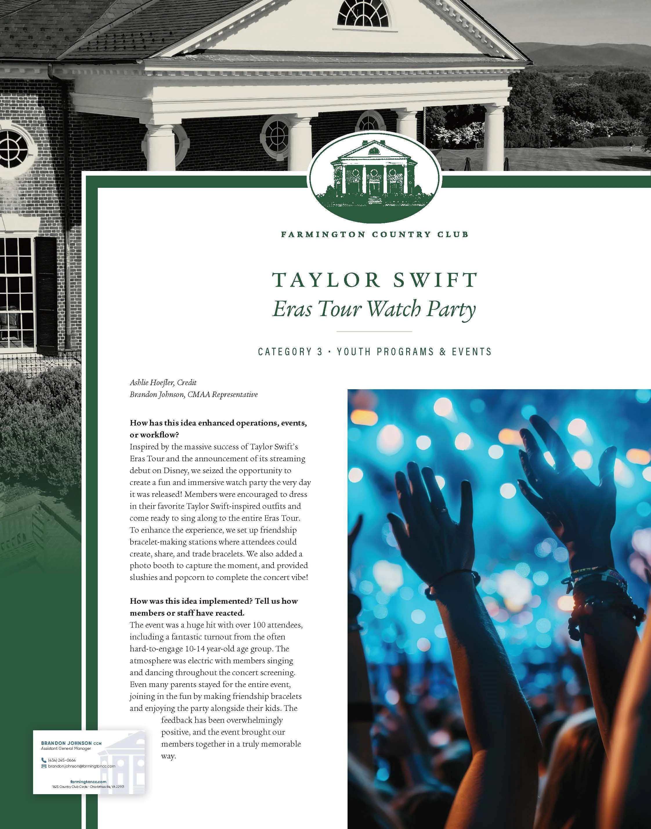 The event was a huge hit with over 100 attendees, including a fantastic turnout from the often hard-to-engage 10-14 year-old age group. The atmosphere was electric with members singing and dancing throughout the concert screening. Even many parents stayed for the entire event, joining in the fun by making friendship bracelets and enjoying the party alongside their kids. The feedback has been overwhelmingly positive, and the event brought our members together in a truly memorable way.