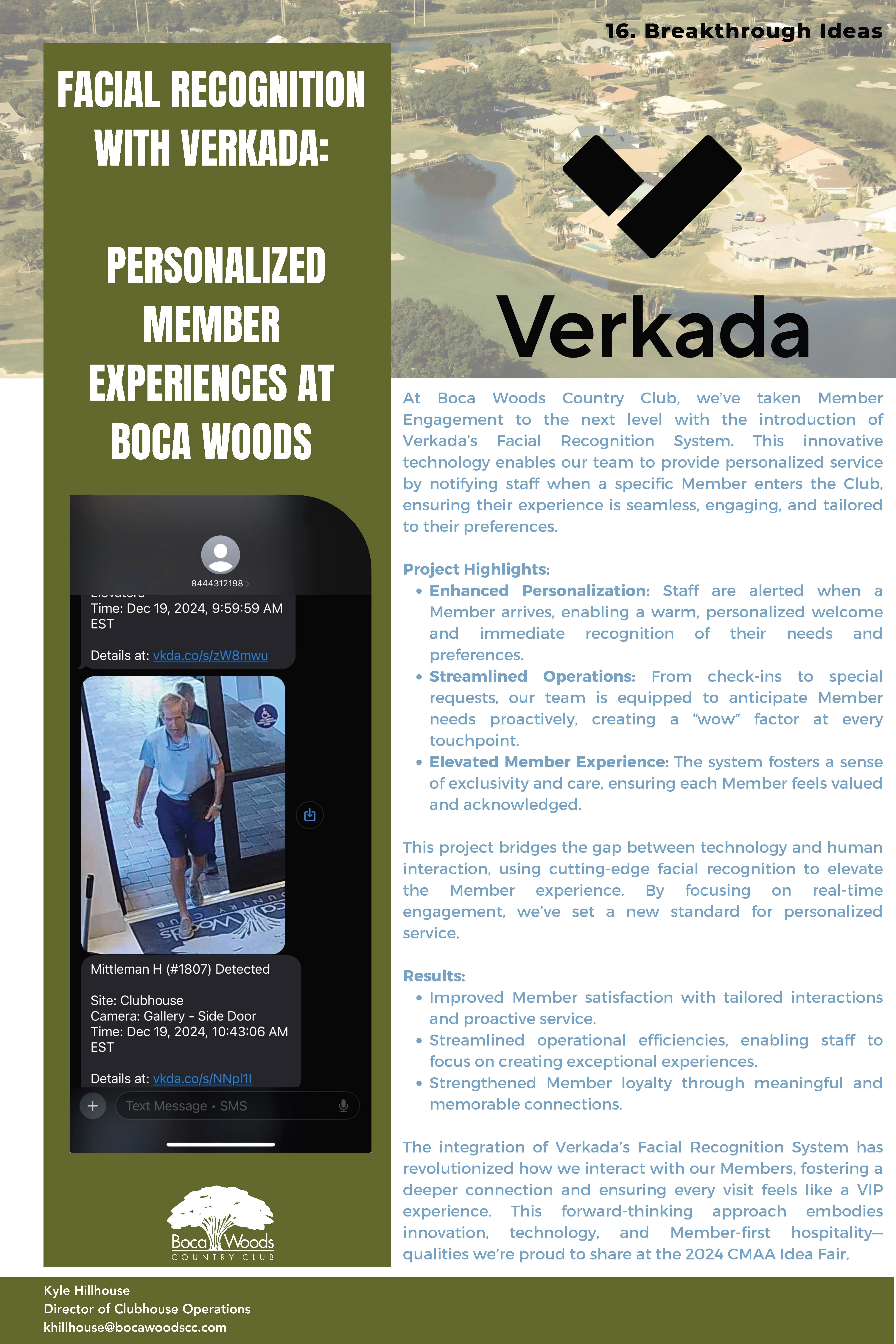 This technology ensures a seamless Member experience by alerting staff of Member arrivals, allowing for personalized greetings and proactive service. The system fosters a sense of exclusivity and care while improving operational efficiency.