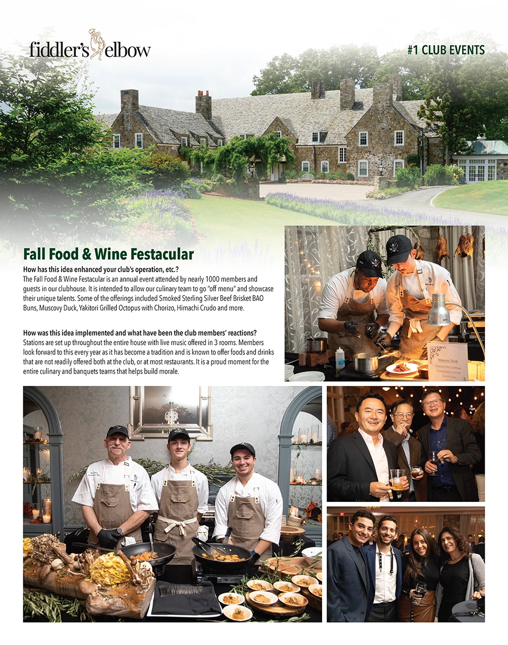 The Fall Food & Wine Festacular is an annual event attended by nearly 1000 members and guests in our clubhouse. It is intended to allow our culinary team to go “off menu” and showcase their unique talents. Some of the offerings included Smoked Sterling Silver Beef Brisket BAO Buns, Muscovy Duck, Yakitori Grilled Octopus with Chorizo, Himachi Crudo and more.
