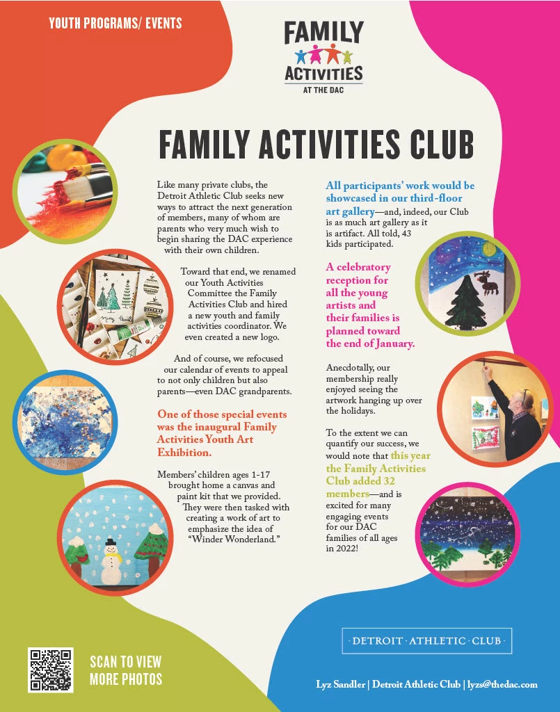 Like many private clubs, the Detroit Athletic Club seeks new ways to attract the next generation of members, many of whom are parents who very much wish to begin sharing the DAC experience with their own children.
