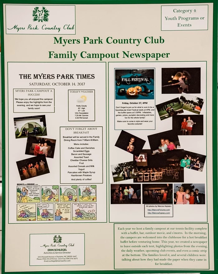 The Club has been hosting a campout for many years, and while it is well attended and we receive great feedback, we wanted to hone in on minor adjustments to improve the experience. This small addition to our family campout enhanced the member experience by creating a keepsake for the event, got children excited about seeing their faces in the paper, and gave the nostalgic feel of a physical paper in the hands of our parents. This also provided an outlet to highlight upcoming events as an added bonus.