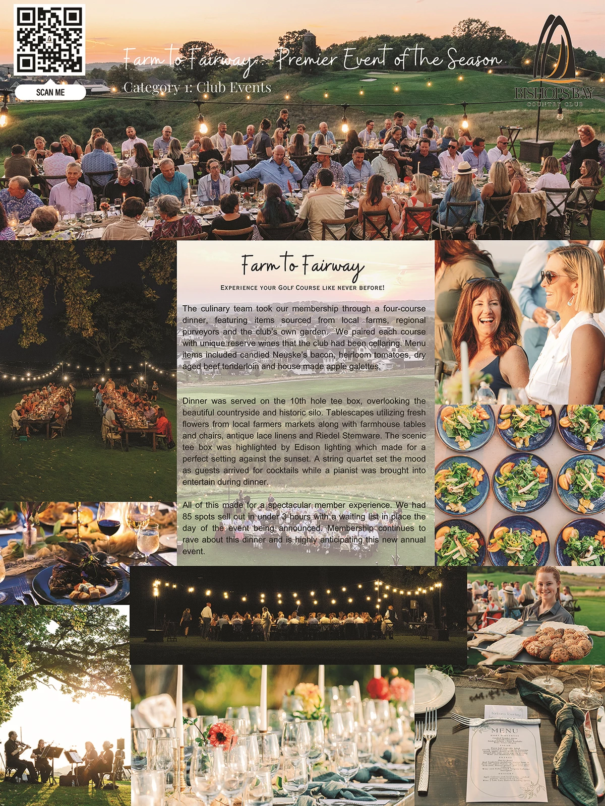 As our membership has grown and expanded, the demand for a unique dining experience showcasing local provisions has become paramount for the club to deliver. Our Chef reached out to new purveyors and local farms to procure all the ingredients to curate a premier member dining experience. Our Event Manager worked with area rental companies to produce elegant tablescapes to match the views and fall season. Flowers were acquired day of at the Dane County Farmers' Market, America's largest producers-only farmers' market, held on the Capitol Square in downtown Madison, WI. All of this made for a spectacular member experience. We had 85 spots sell out in under 3 hours with a waiting list in place the day of the event being announced. Membership continues to rave about this dinner and is highly anticipating this new annual event.