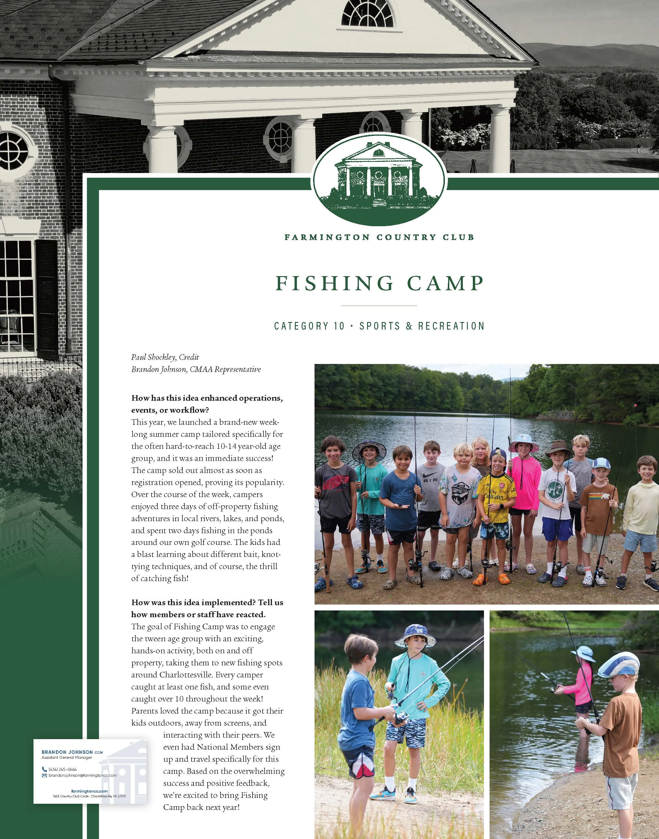 The goal of Fishing Camp was to engage the tween age group with an exciting, hands-on activity, both on and off property, taking them to new fishing spots around Charlottesville. Every camper caught at least one fish, and some even caught over 10 throughout the week! Parents loved the camp because it got their kids outdoors, away from screens, and interacting with their peers. We even had National Members sign up and travel specifically for this camp. Based on the overwhelming success and positive feedback, we’re excited to bring Fishing Camp back next year!