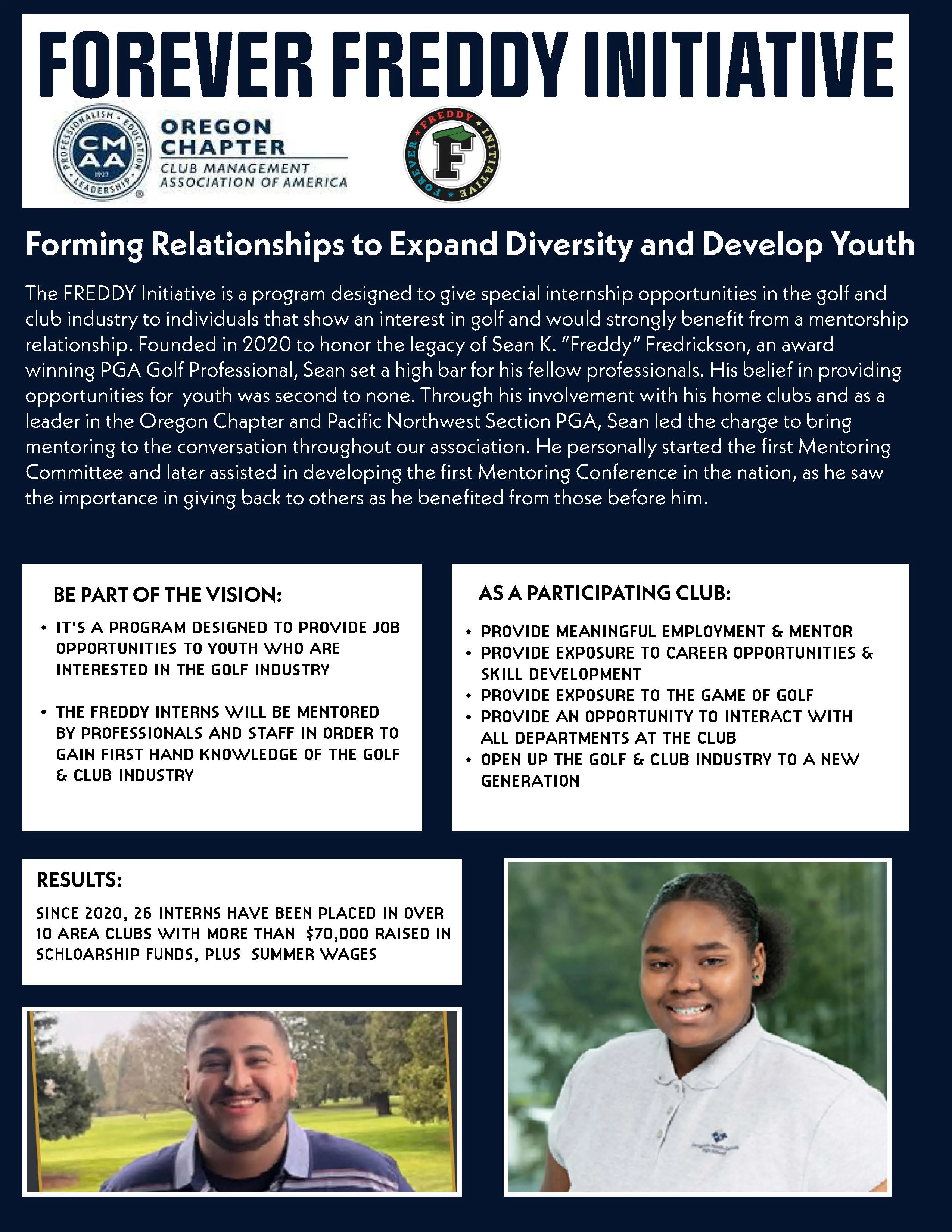 The FREDDY Initiative is a program designed to give special internship opportunities in the golf and club industry to individuals that show an interest in golf and would strongly benefit from a mentorship relationship.