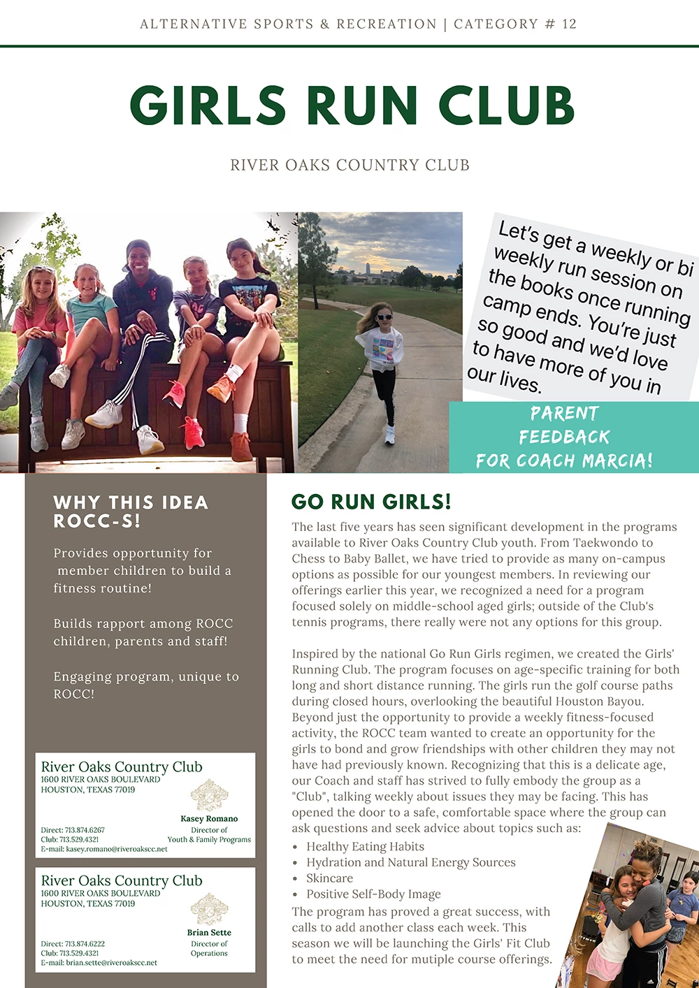 The Girls' Run Club created a unique, fitness based opportunity for middle school aged member children to get to know each other and the ROCC team. The club promotes young people to begin building a fitness routine centered around the resources the Club has to offer.