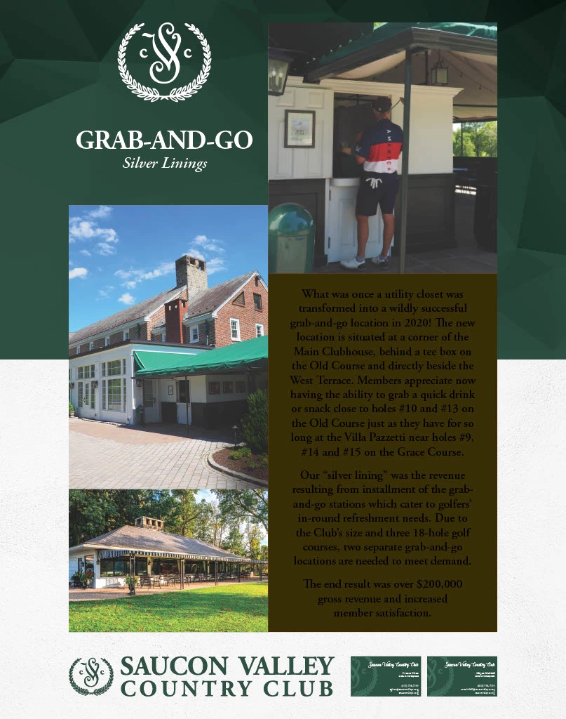 What was once a utility closet was transformed into a wildly successful grab-and-go location in 2020! The new location is situated at a corner of the Main Clubhouse, behind a tee box on the Old Course and directly beside the West Terrace.
