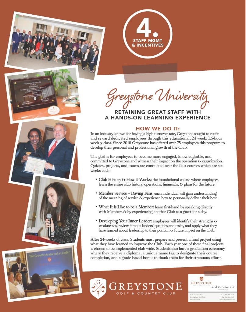 To retain and reward employees and bring out their full potential, we created a four-part, 26-week class employee enrichment, and leadership program. Over 60% of all who graduate from the program are still employed with Greystone five years later.