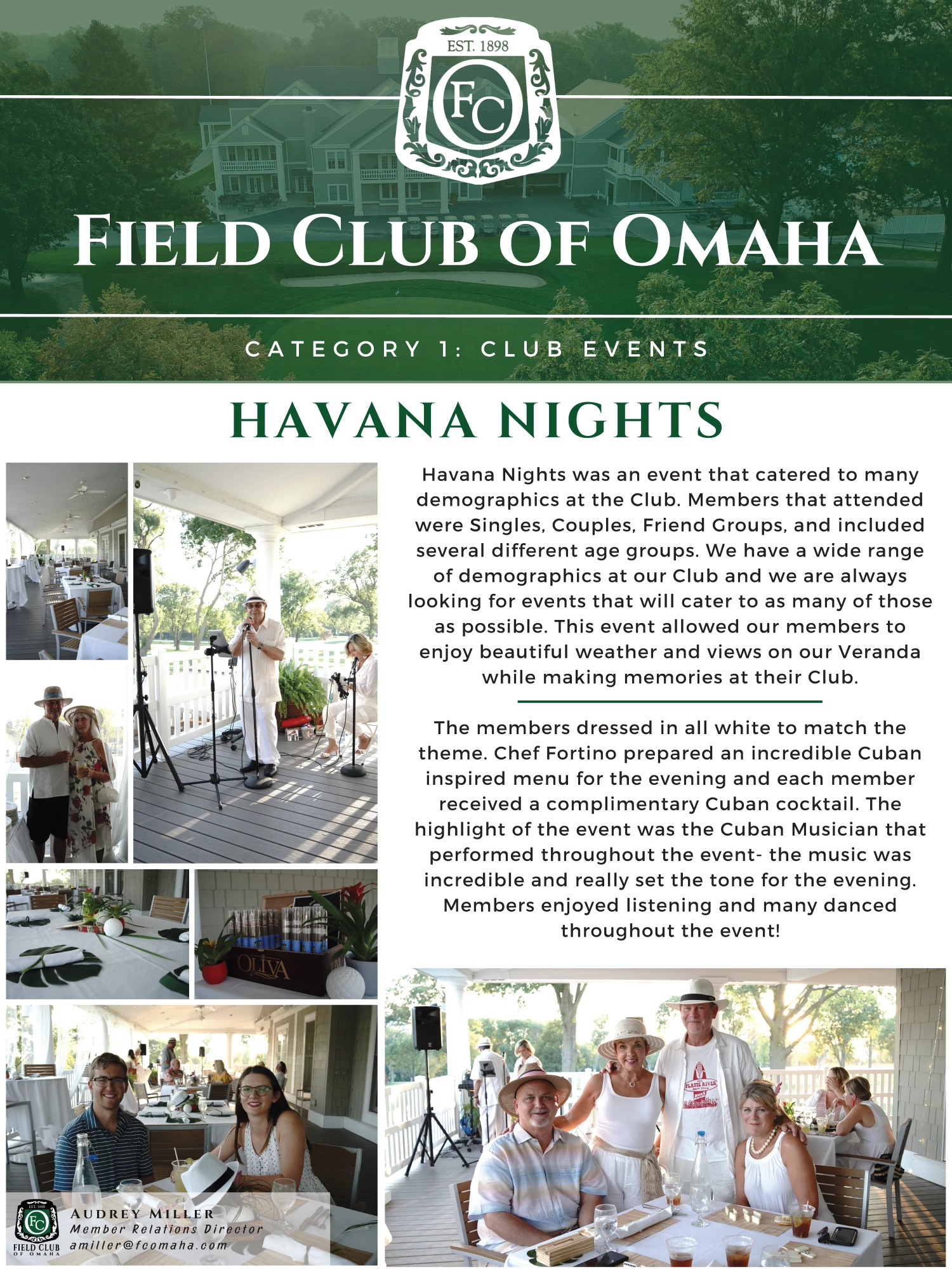 Havana Nights was an event that catered to many demographics at the Club. Members that attended were Singles, Couples, Friend Groups, and included several different age groups. We have a wide range of demographics at our Club and we are always looking for events that will cater to as many of those as possible. This event allowed our members to enjoy beautiful weather and views on our Veranda while making memories at their Club.