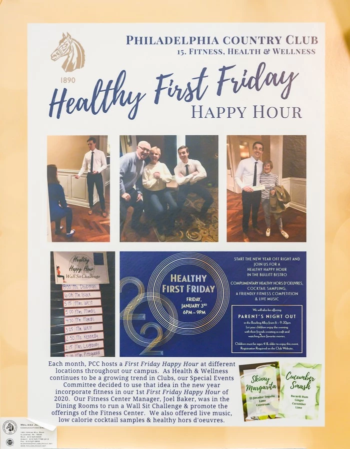 Each month, PCC hosts a First Friday Happy Hour at different locations throughout our campus. As Health & Wellness continues to be a growing trend in Clubs, our Special Events Committee & Staff decided to use that idea in the new year incorporate fitness in our 1st First Friday Happy Hour of 2020. Our most popular First Friday Happy Hours are when we change it up and introduce a new theme. It was also a great way to introduce our Fitness Center Manager to Members that would not normally get the opportunity to meet him.