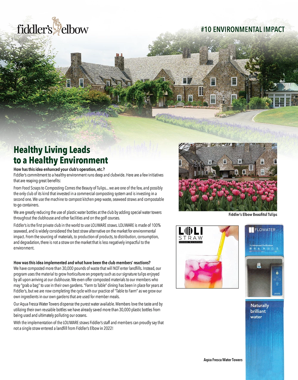 Fiddler’s commitment to a healthy environment runs deep and clubwide. Here are a few initiatives that are reaping great benefits: