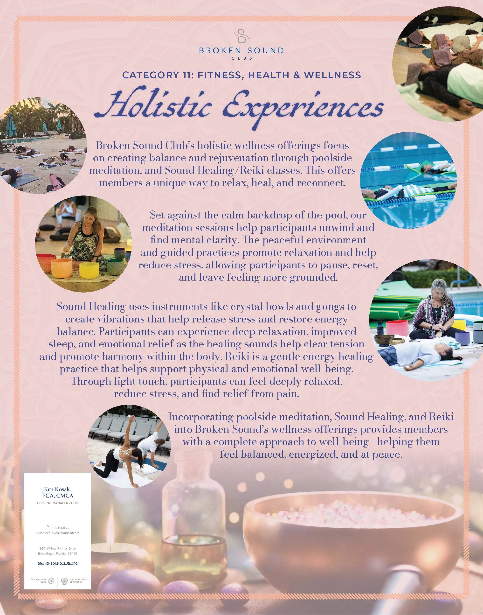 Our Holistic Wellness offerings enhance the Club's operations by not only engaging our current members but also helping differentiate us from neighboring clubs and attract potential new members. As more individuals seek experiences beyond traditional amenities, incorporating holistic wellness programs provides members with opportunities to focus on physical and mental well-being beyond the typical recreational activities.