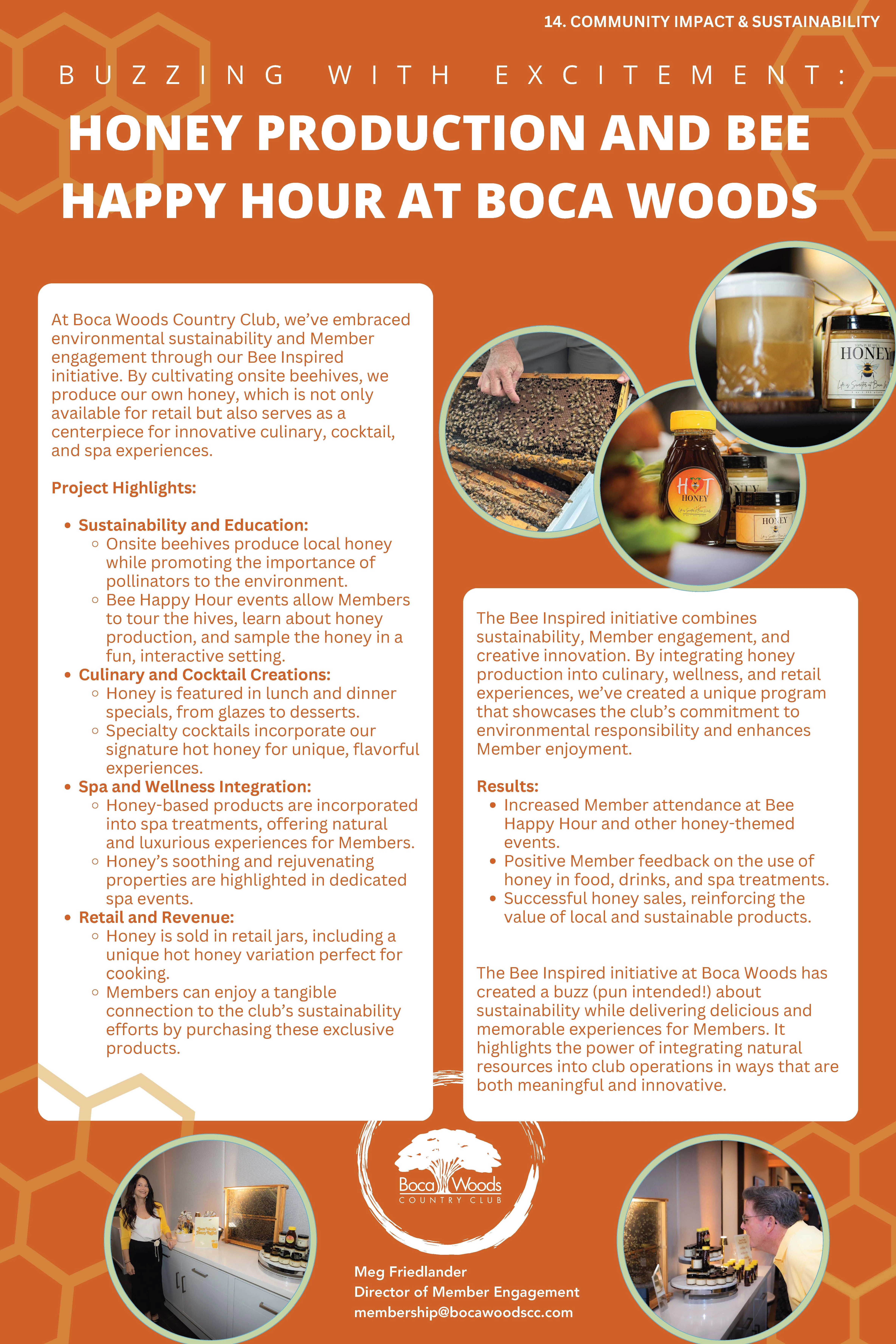 Onsite beehives promoted sustainability and served as the foundation for unique culinary, wellness, and retail experiences. The program educated Members on environmental responsibility while delivering innovative offerings.