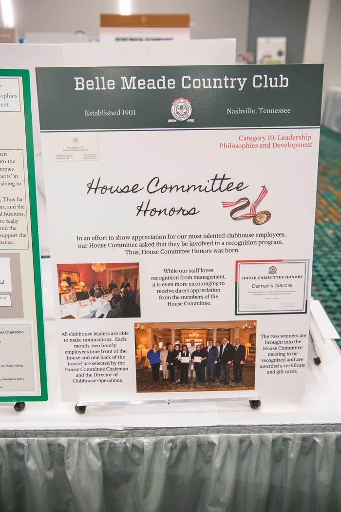 After informing our House Committee of the difficulty in retaining employees in a very difficult labor market, they asked what they could do to help. This is how House Committee Honors was born. Each month at the House Committee Meeting we recognize two stellar clubhouse employees with a signed Certificate of Achievement and gift cards. They are then posted in our monthly Employee and Member newsletters.