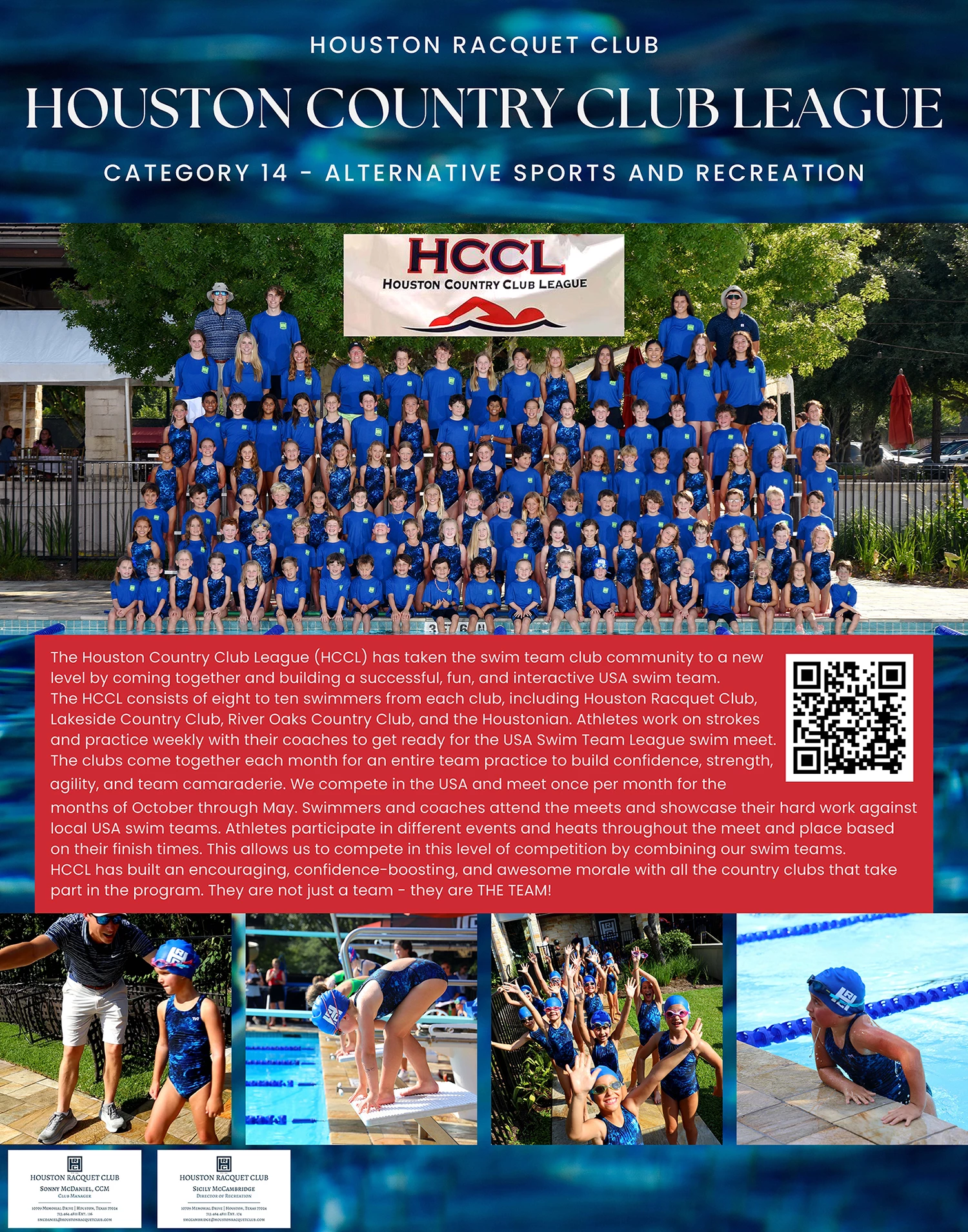 The Houston Country Club League (HCCL) has taken the swim team club community to a new level by coming together and building a successful, fun, and interactive USA swim team that builds confidence, strength, agility, and team camaraderie.