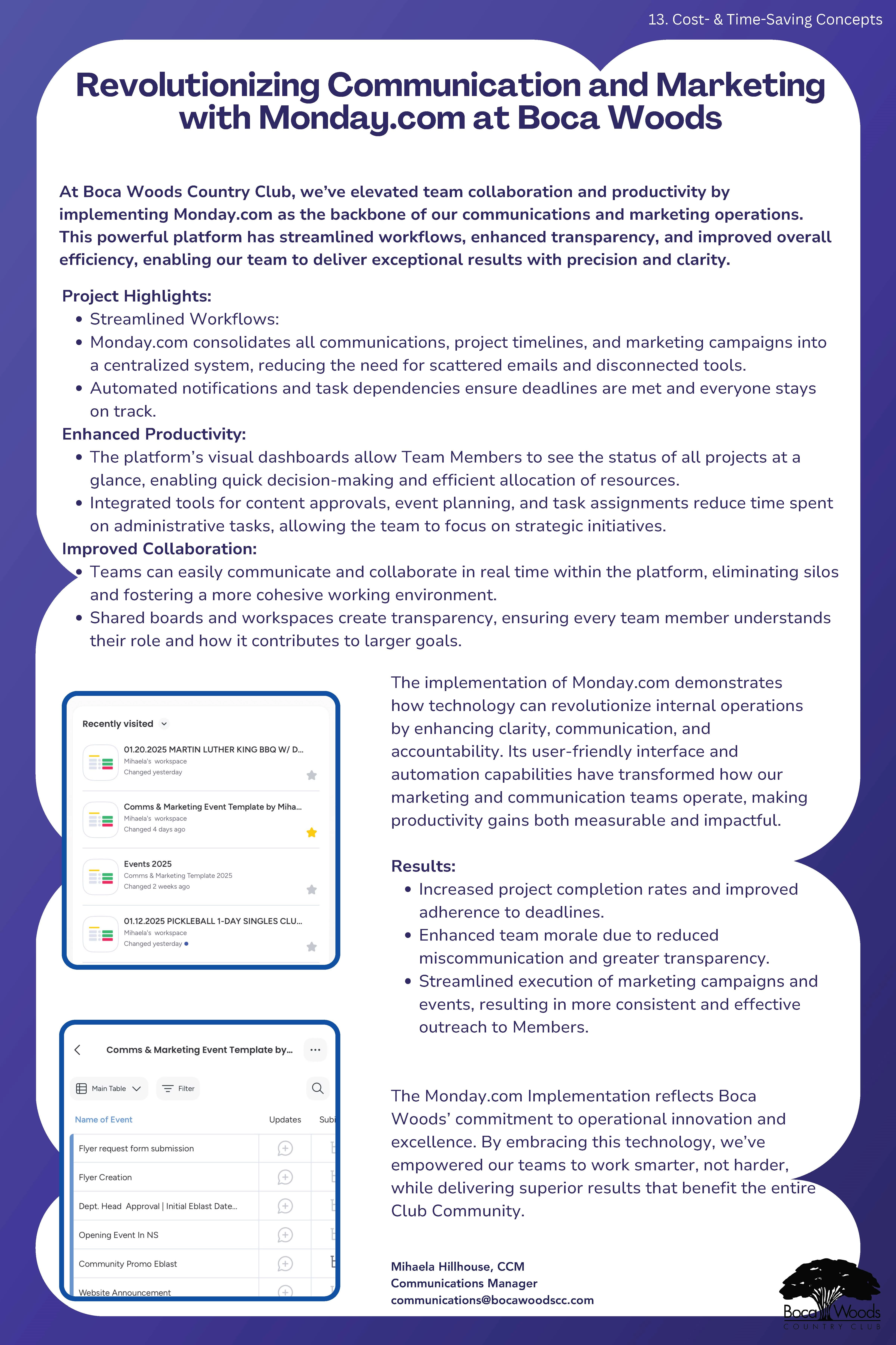 Teams used Monday.com for task management, deadlines, and content approvals. It reduced miscommunication and allowed staff to focus on strategic projects, resulting in better Member outreach.