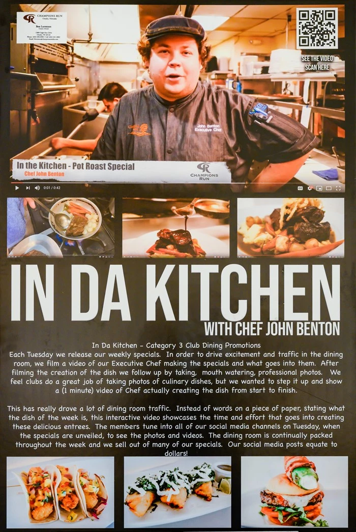 This has really driven a lot of dining room traffic. Instead of words on a piece of paper, stating what the dish of the week is, this interactive video showcases the time and effort that goes into creating these delicious entrees. The members tune in to all of our social media channels on Tuesday when the specials are unveiled to see the photos and videos. The dining room continually is packed throughout the week and we sell out of many of our specials. Our social media posts equate to dollars!
