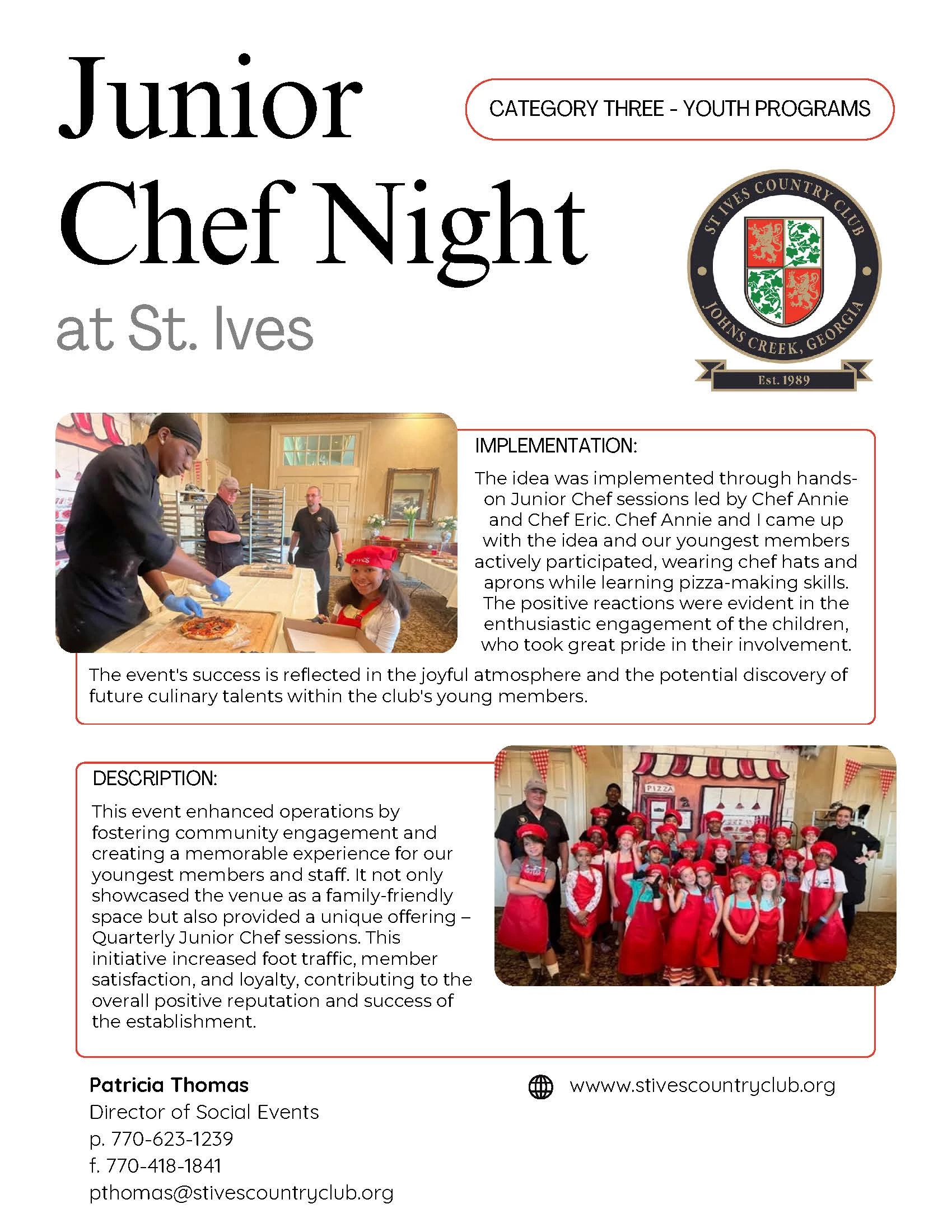 This event enhanced operations by fostering community engagement and creating a memorable experience for our youngest members and staff. It not only showcased the venue as a family-friendly space but also provided a unique offering – Quarterly Junior Chef sessions. This initiative increased foot traffic, member satisfaction, and loyalty, contributing to the overall positive reputation and success of the establishment.