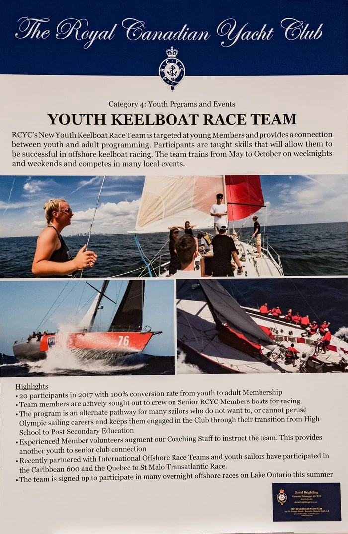 RCYC’s New Youth Keelboat Race Team is targeted at young members and provides a connection between youth and adult programming. Participants are taught skills that will allow them to be successful in offshore keelboat racing. The team trains from May to October on weeknights and weekends and competes in many local events. Of 20 participants 100% have converted from youth to senior memberships. This team connects our youth sailors to the senior club an area that has been weak traditionally.