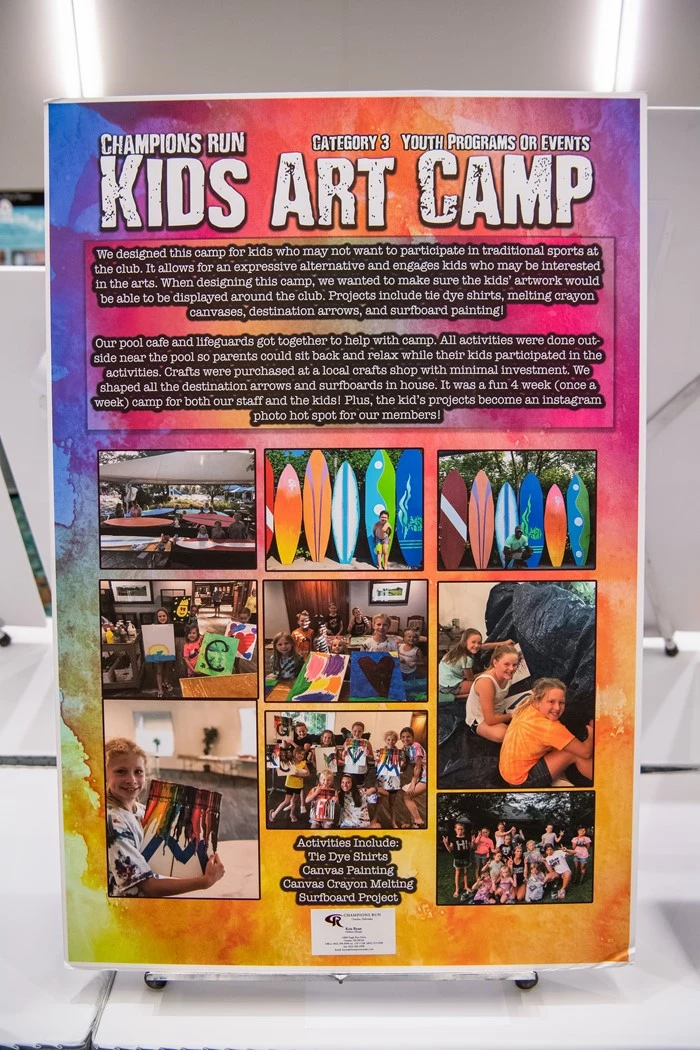 Art camp was designed for kids who may not want to participate in traditional sports at the club. It allows for an expressive alternative and engages kids who may be interested in the arts. When designing this camp, we wanted to make sure the kids artwork would be able to be displayed around the club. Projects include tie dye shirts, melting crayon canvases, destination arrows, and surfboard painting!