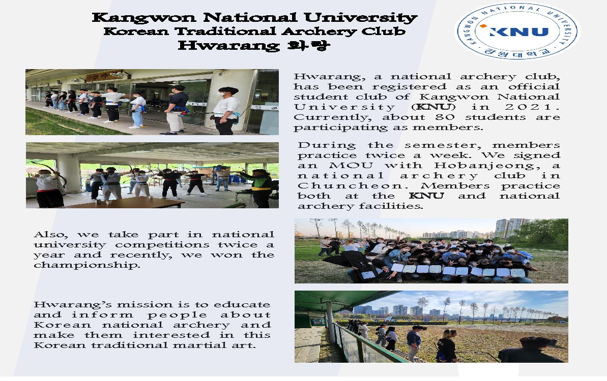 It started through a few students and faculty members who have an affection for Korean traditional archery. There were difficulties in preparing a place and equipment, but we were able to solve it with the help of the university and related organizations. Currently, students are showing a lot of interest and actively participating in the aspect of learning the tradition of the country while accepting it as a new sport.