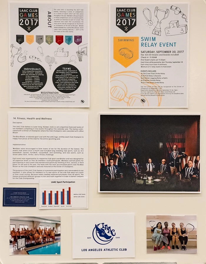 Members were encouraged to form teams of ten for the duration of the Games. The events took place once a month and included long standing club sports, such as 3x3 basketball, squash, handball, swimming, and racquetball, and new events, such as Great Lakes swim, ping pong, 5k run, and a fitness challenge.