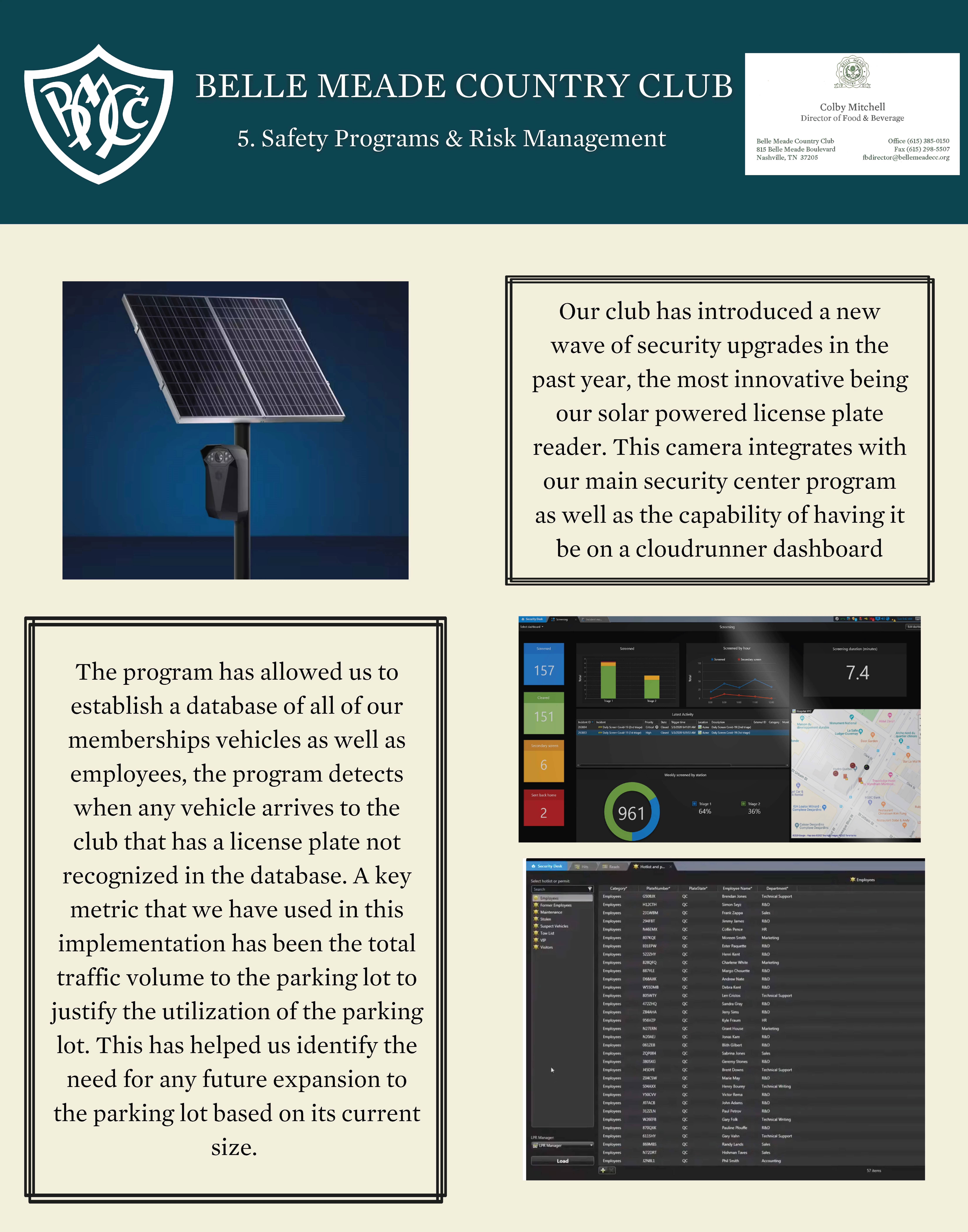 The license plate reader allowed for us to eliminate the need for installing a gate. It allowed for the club to still look very welcoming and allowed for the additional security as well as the environmental impact of using solar power