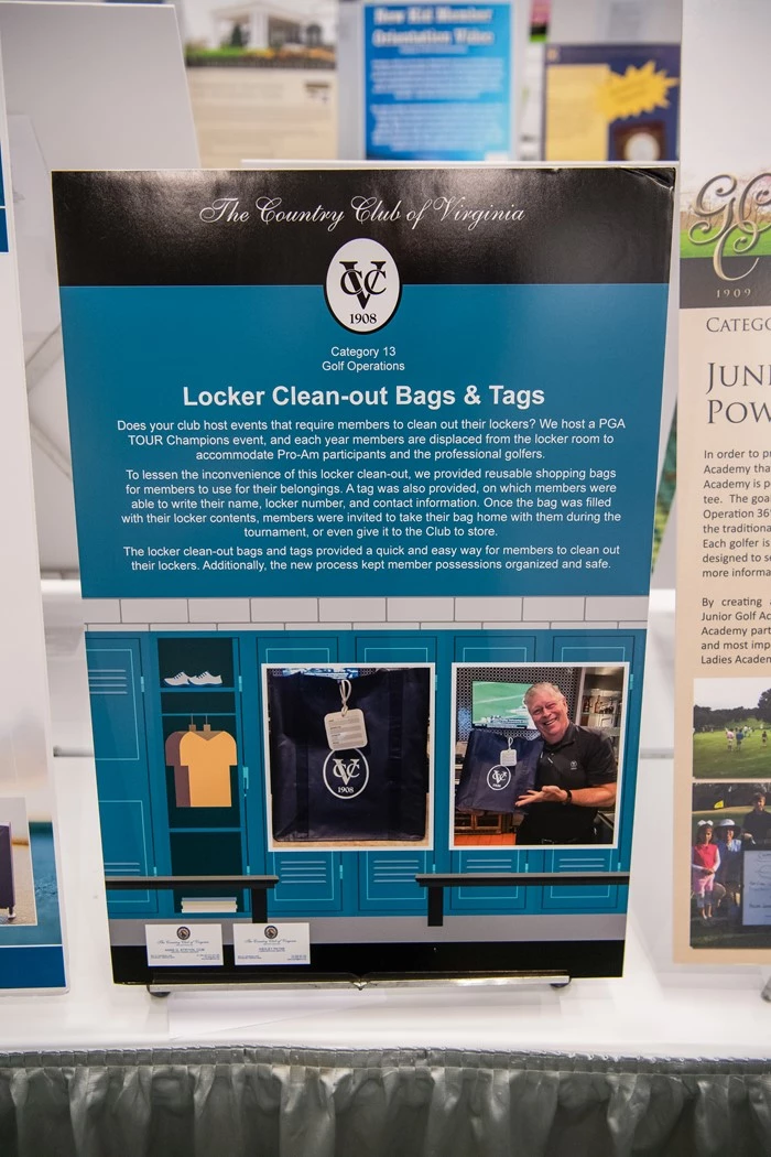 Does your club host events that require members to clean out their lockers? We host a PGA TOUR Champions event, the Dominion Energy Charity Classic. Each year, leading up to and during the tournament, members are displaced from the locker room to accommodate Pro-Am participants and the professional golfers. Asking members to clean out lockers for a tournament that also takes away golfing days is inconvenient… so we thought of Locker Clean-out Bags and Tags as an easy solution! To lessen the inconvenience of this locker clean-out for our members, we provided bags for them to use for their belongings. A tag was also provided, on which they were able to write their name, locker number, and contact information. Once the bag was filled with their locker contents, members were invited to take their bag home with them during the tournament, or even give it to the Club to store.
