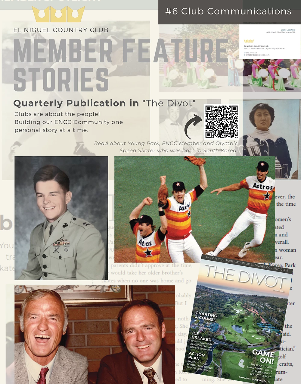 Each quarter, we produce "The Divot" where members get a look back at golf, social events and memories of the past quarter. "The Divot" also is a communication platform we use to look ahead of what's to come. Within "The Divot" we feature "Member Stories" where we honor members and some of their amazing achievements, like Young Park who was an Olympic Speed Skater!