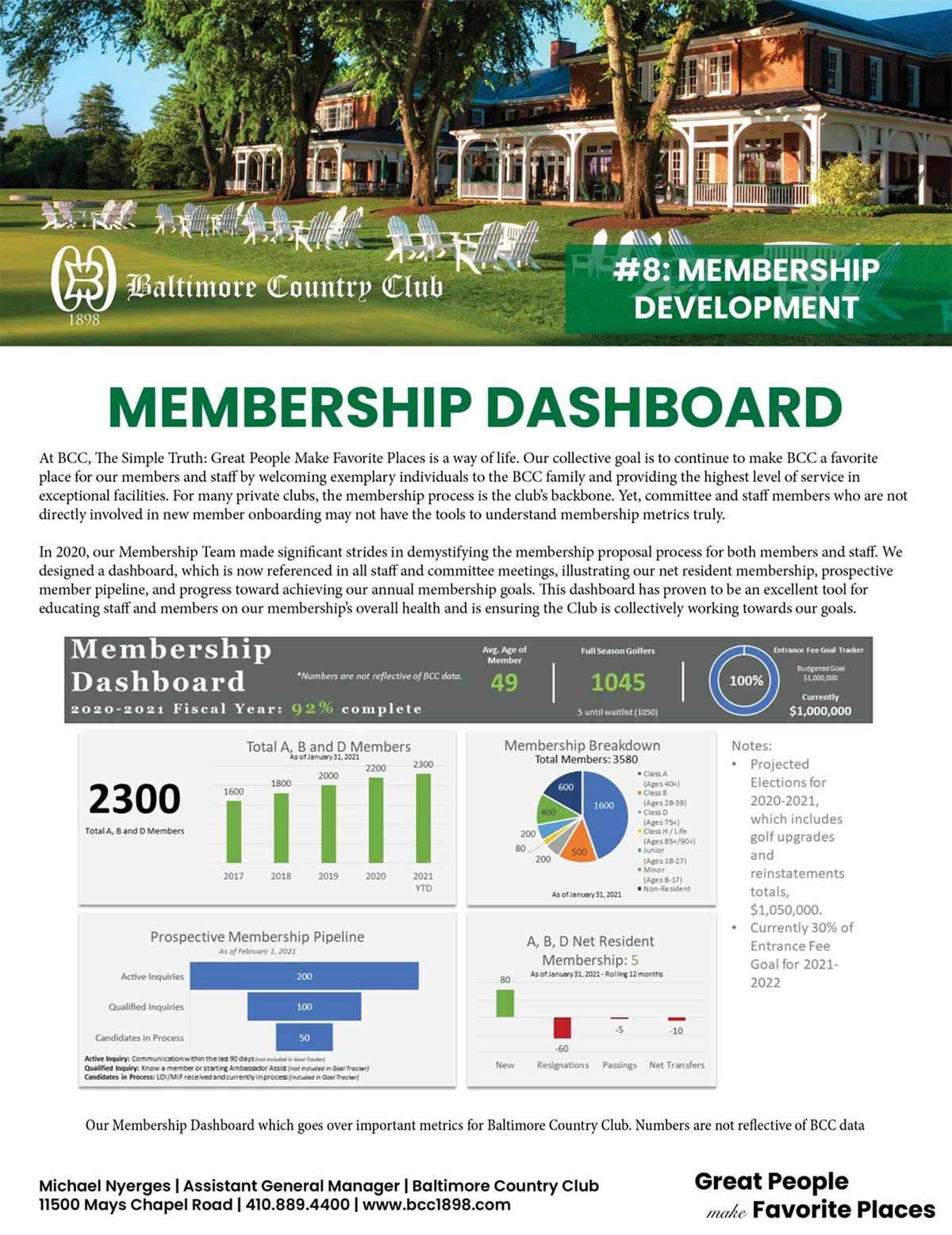At BCC, The Simple Truth: Great People Make Favorite Places is a way of life. Our collective goal is to continue to make BCC a favorite place for our members and staff by welcoming exemplary individuals to the BCC family and providing the highest level of service in exceptional facilities. For many private clubs, the membership process is the club’s backbone. Yet, committee and staff members who are not directly involved in new member onboarding may not have the tools to understand membership metrics truly.