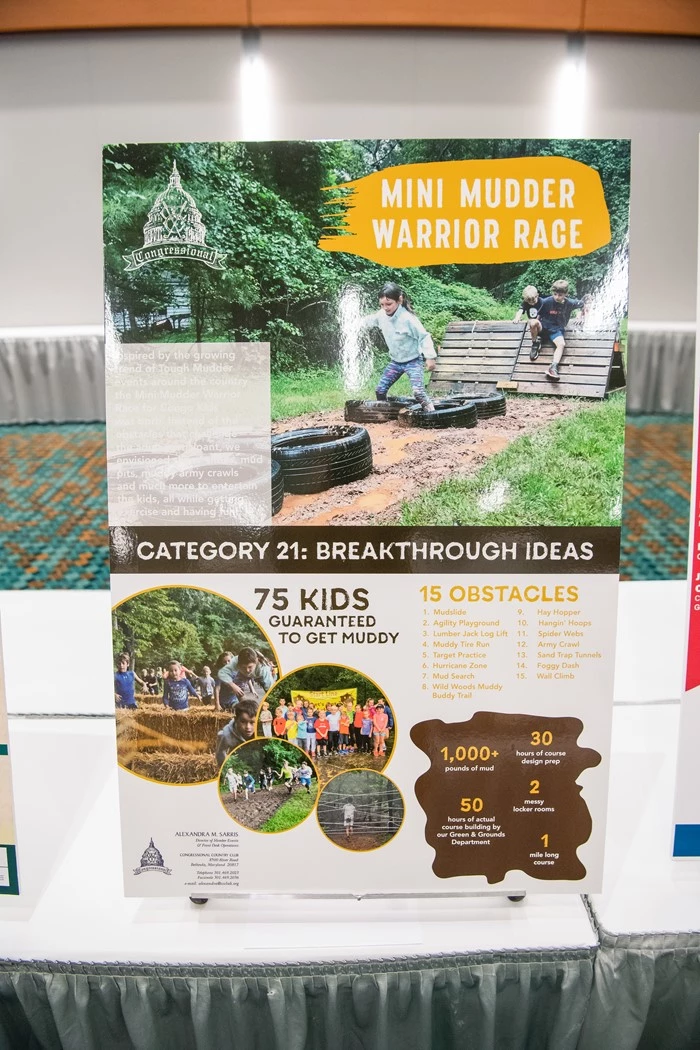 The 3rd Annual Mini Mudder was much-anticipated! The event focused on the core values of Congressional: consistent implementation, clear intentions, continuous improvement. The Fitness Team created an event that cultivated the creativity across multiple departments and went in tune with a fitness trend that has been executed across the country. Ranging from the Greens & Grounds Team in developing the obstacles, the Food & Beverage Team with creating the “mud” themed snacks and beverages, as well as the commitment and dedication from the Fitness team. The some of the fifteen muddy obstacles included a mud search, spider webs, army crawl, foggy dash, wall climb, hurricane zone and more. Over 1000 pounds of mud was used in a 1 mile long course that took 30 hours to plan and 50 hours to execute. It was a happy, muddy event with over 75 kids, ages 5-12, participating in the annual event in September 2018. Finally, participants left with goodie bags full of Congressional (and of course muddy) swag!
