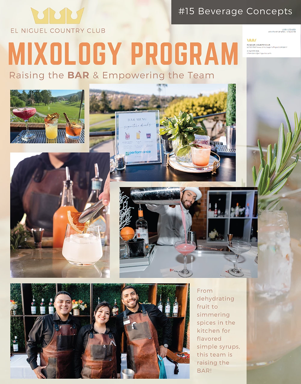 We empowered our lead trainers by extending invitations for Mixology education. Each team member underwent Mixology certifications and extensive training. Included in their training was passing the WSET level 2 Spirts education and WSET level 1 Wines education. Currently, the team sets aside "creative time" each week to develop new and tasty creations for our membership. From dehydrating fruit to simmering spices in the kitchen for flavored simple syrups, this team is raising the BAR! #proudtobeencc