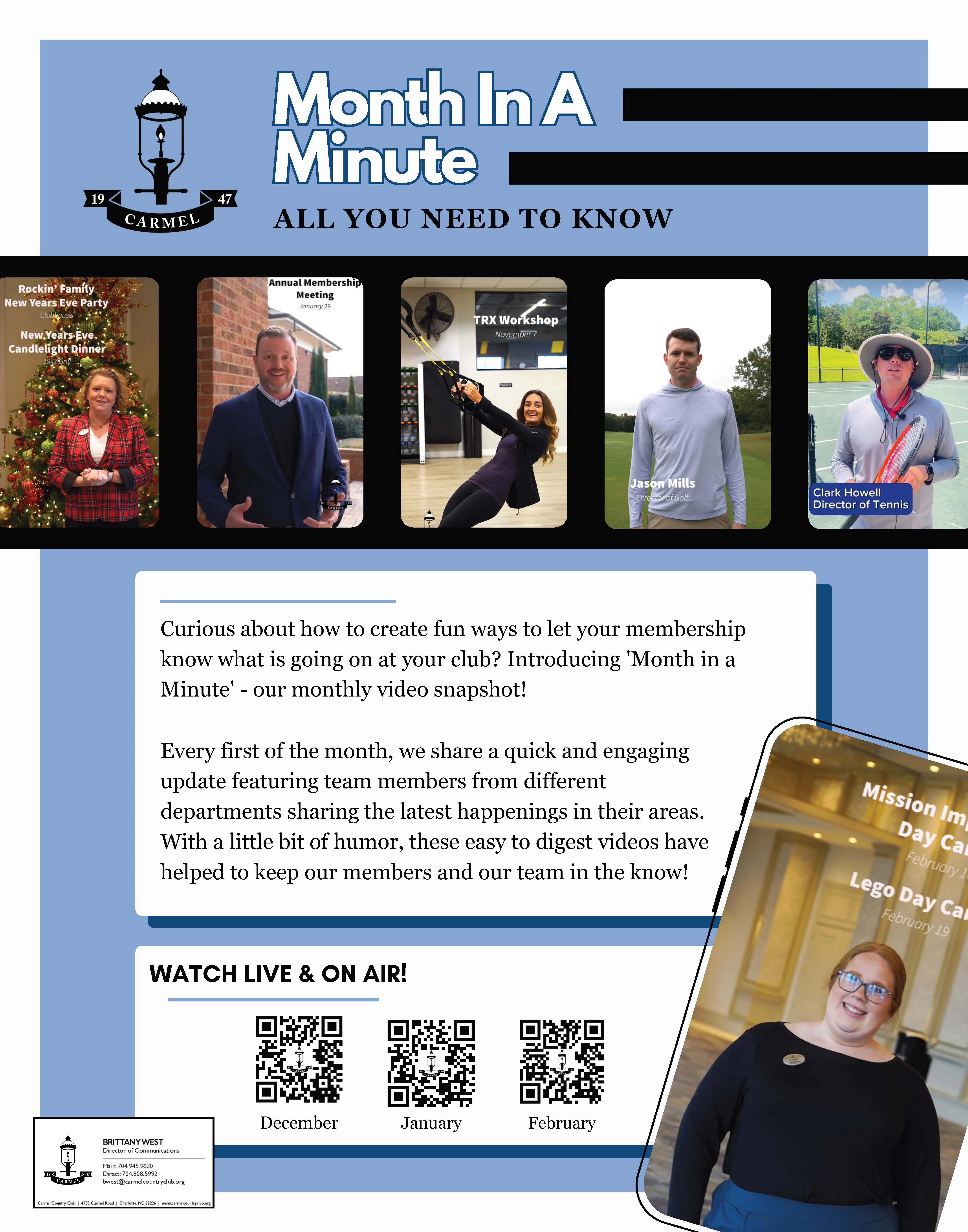 Month in a Minute has helped to diversify our messaging of upcoming events to our members and add a little humor from time to time.