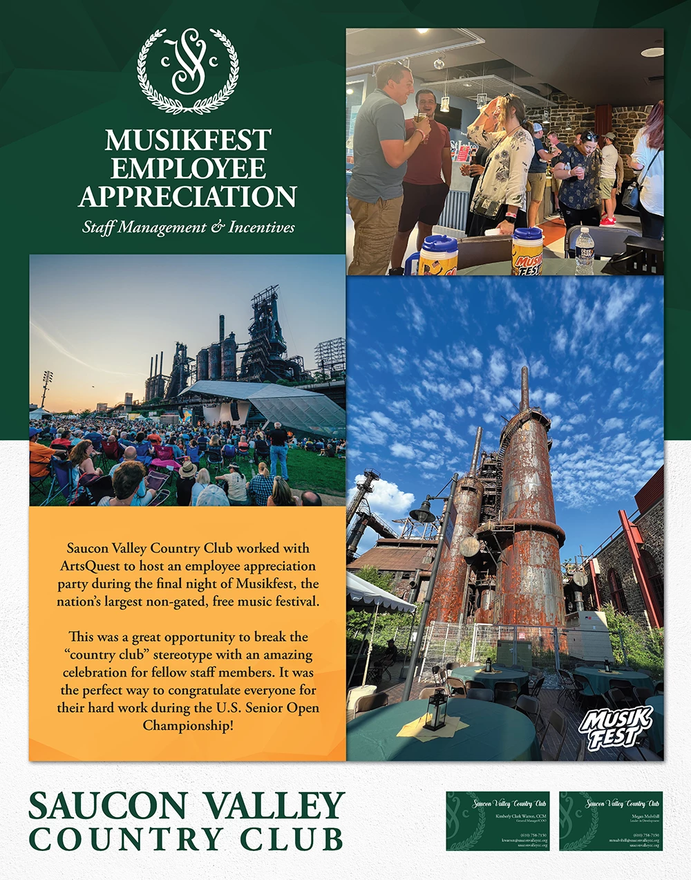 Saucon Valley Country Club worked with ArtsQuest to host an employee appreciation party during the final night of Musikfest, the nation’s largest non-gated, free music festival.