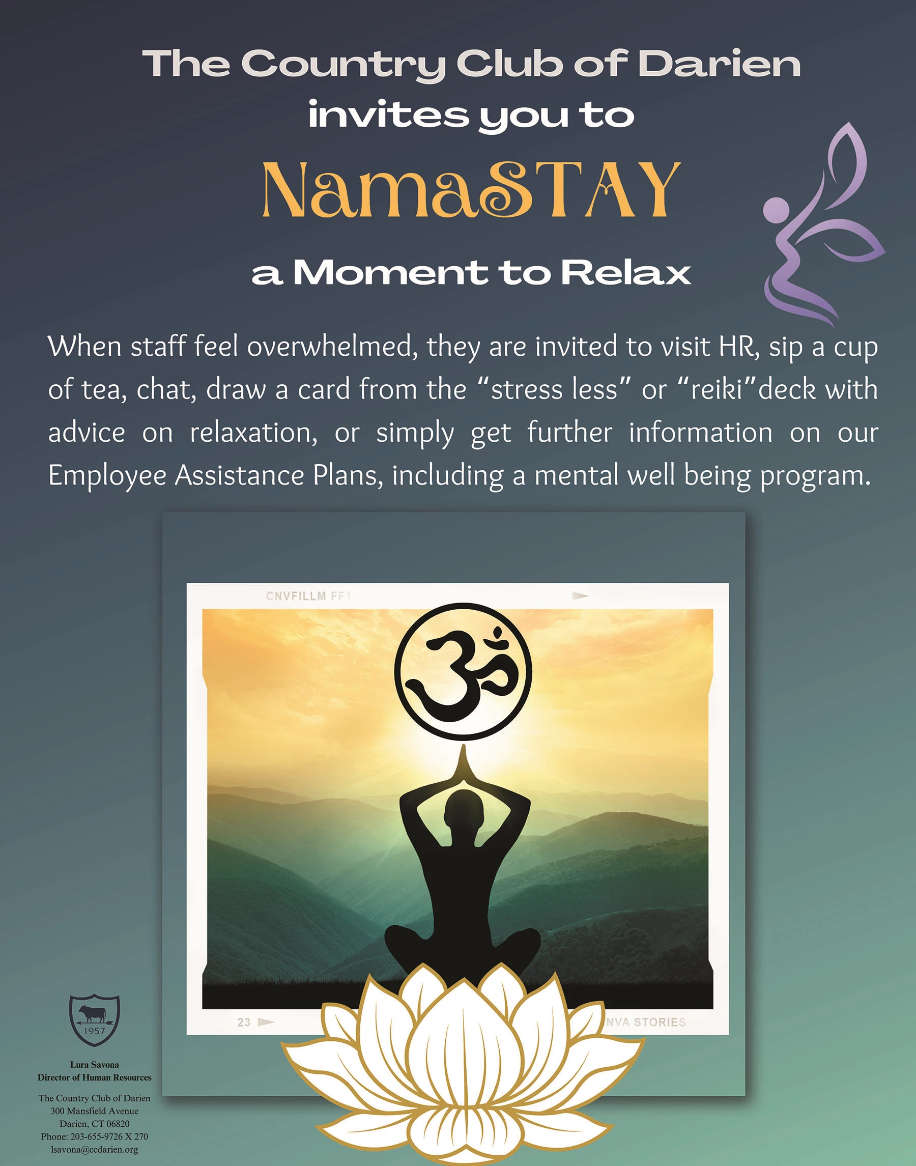 When staff feel overwhelmed, they are invited to visit HR, sip a cup of tea, chat, draw a card from the “stress less” or “reiki” deck with advice on relaxation, or simply get further information on our Employee Assistance Plans, including a mental well-being program.