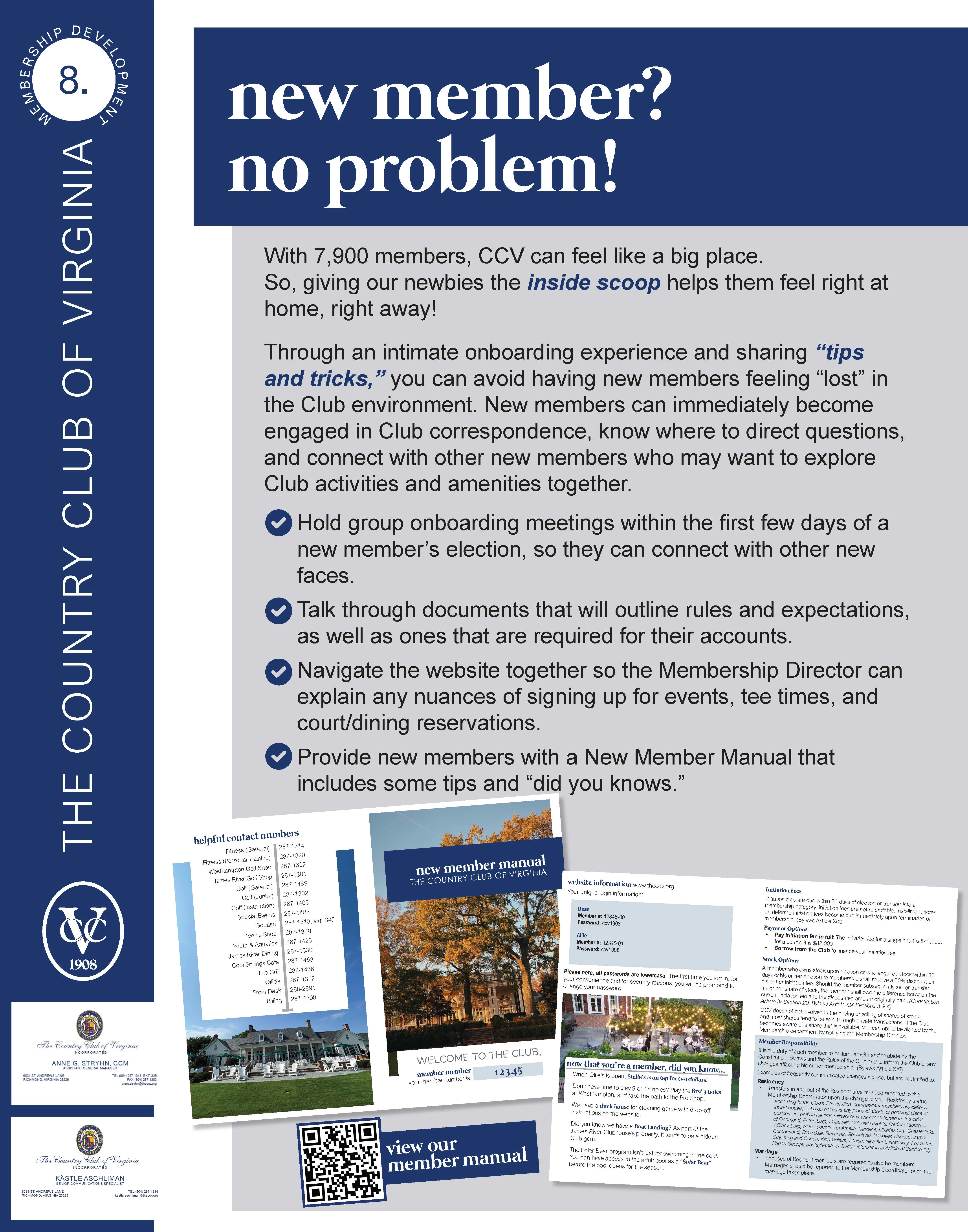 By giving your new members an intimate onboarding experience and sharing “tips and tricks,” you avoid new members feeling “lost” in their Club environment. New members can immediately become engaged in Club correspondence, know where to direct questions, and can connect with other new members who may want to explore Club activities and amenities together.