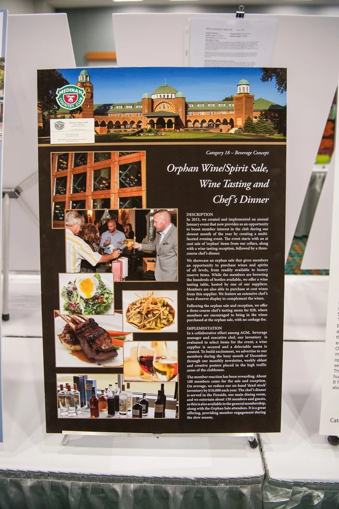 The member reaction has been rewarding. About 100 members come for the sale and reception. On average, we reduce our on-hand ‘dead stock’ inventory by $10,000 each year. The chef’s dinner is served in the Fireside, our main dining room, and we entertain about 150 members and guests, as this is also available to the general membership, along with the Orphan Sale attendees. It is a great offering, providing member engagement during the slow season.