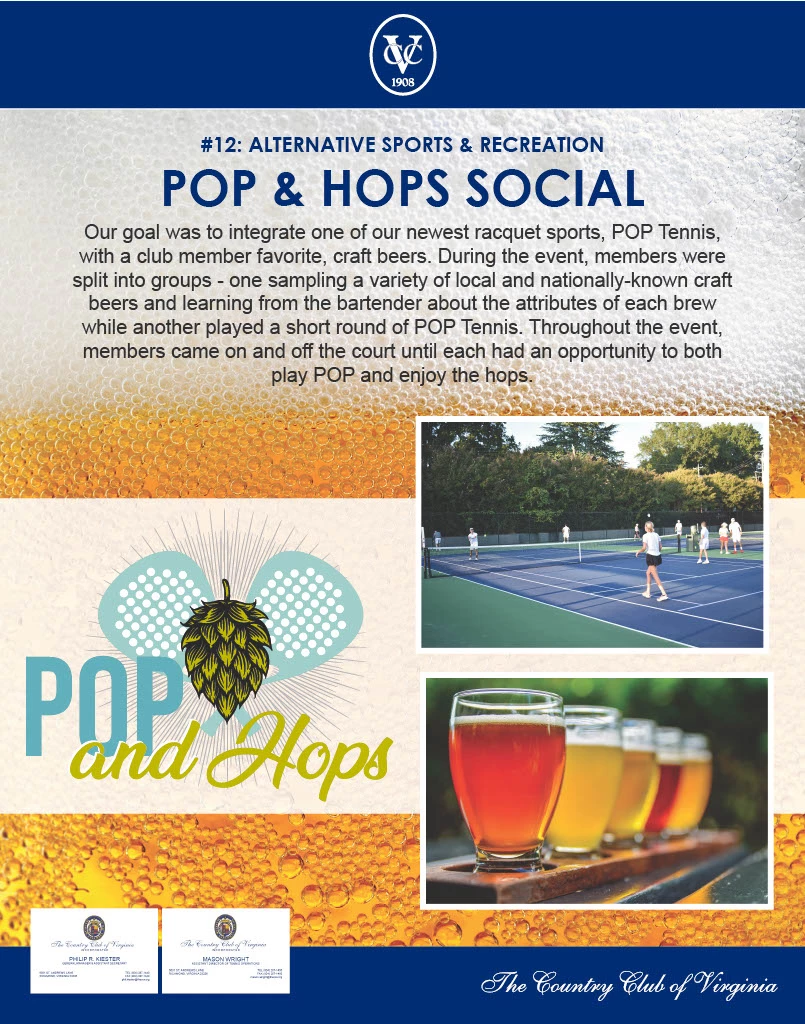Social events are an important element of our programming and new events/ideas are crucial to maintaining interest. POP & Hops has allowed us to continue to expose our membership to a growing racquet sport while adding a fun twist of providing unique, and in many cases local, beers for the members to try. We like this particular sport because it levels the playing field between players with plenty of racquets sports experience and those with none.